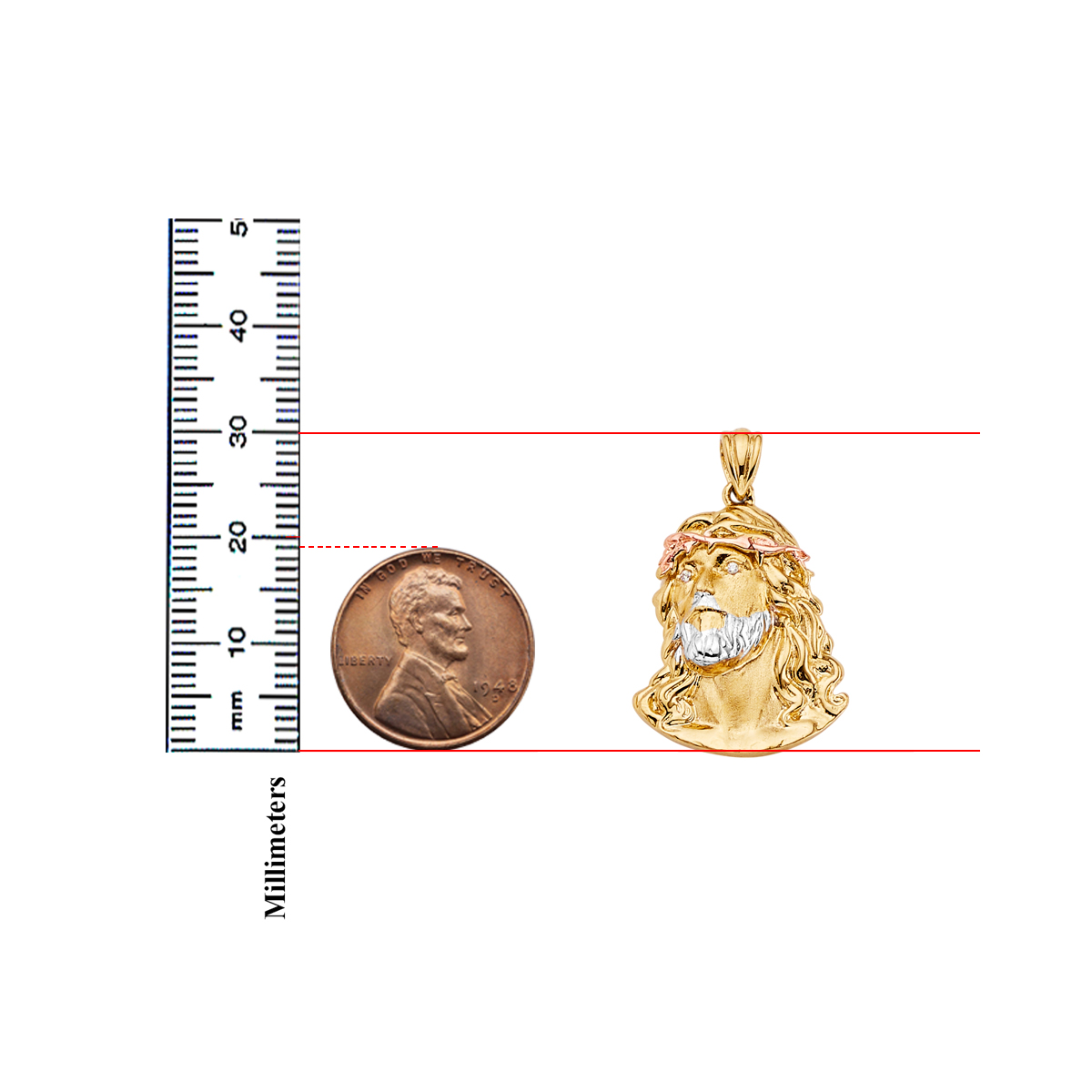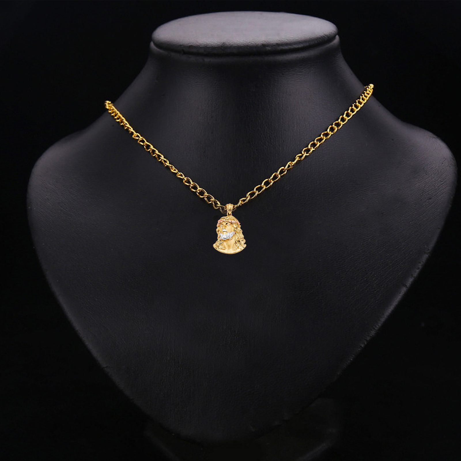 14K Tri Color Gold Jesus Christ Head Pendant