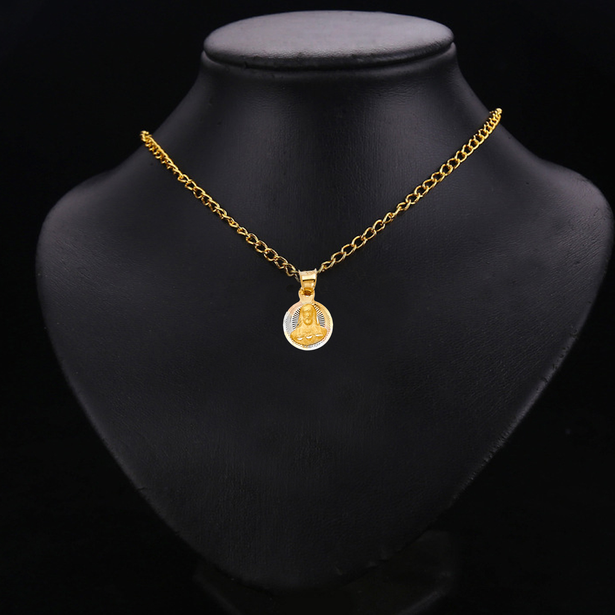 14K Tri Color Gold Jesus Stamp Pendant