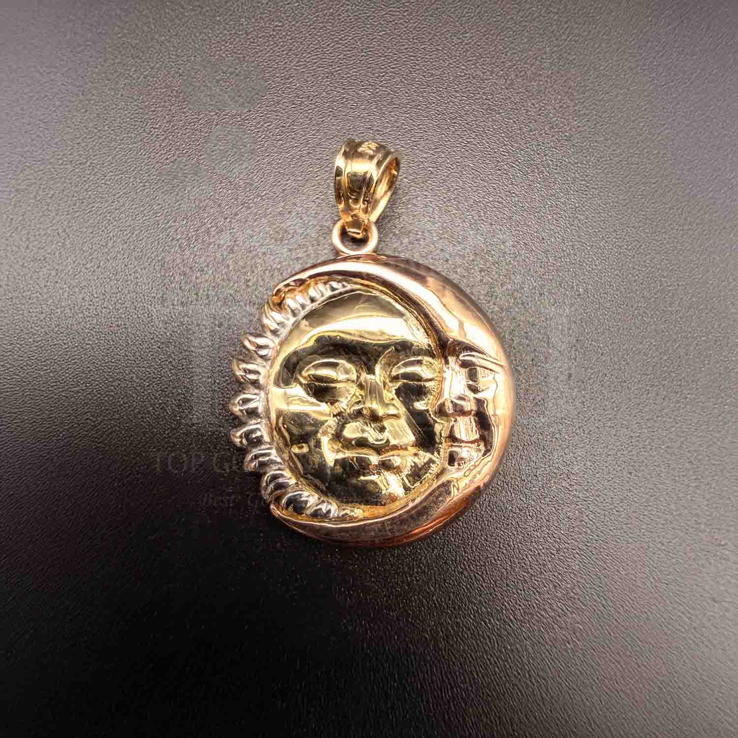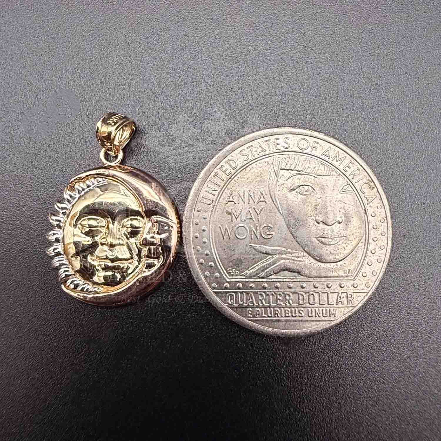 14K Tri Color Gold Moon & Sun Pendant