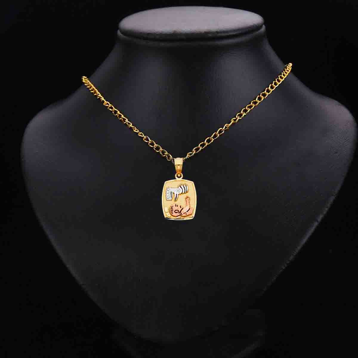 14K Tri Color Gold Religious Baptism Pendant Squared Pendant