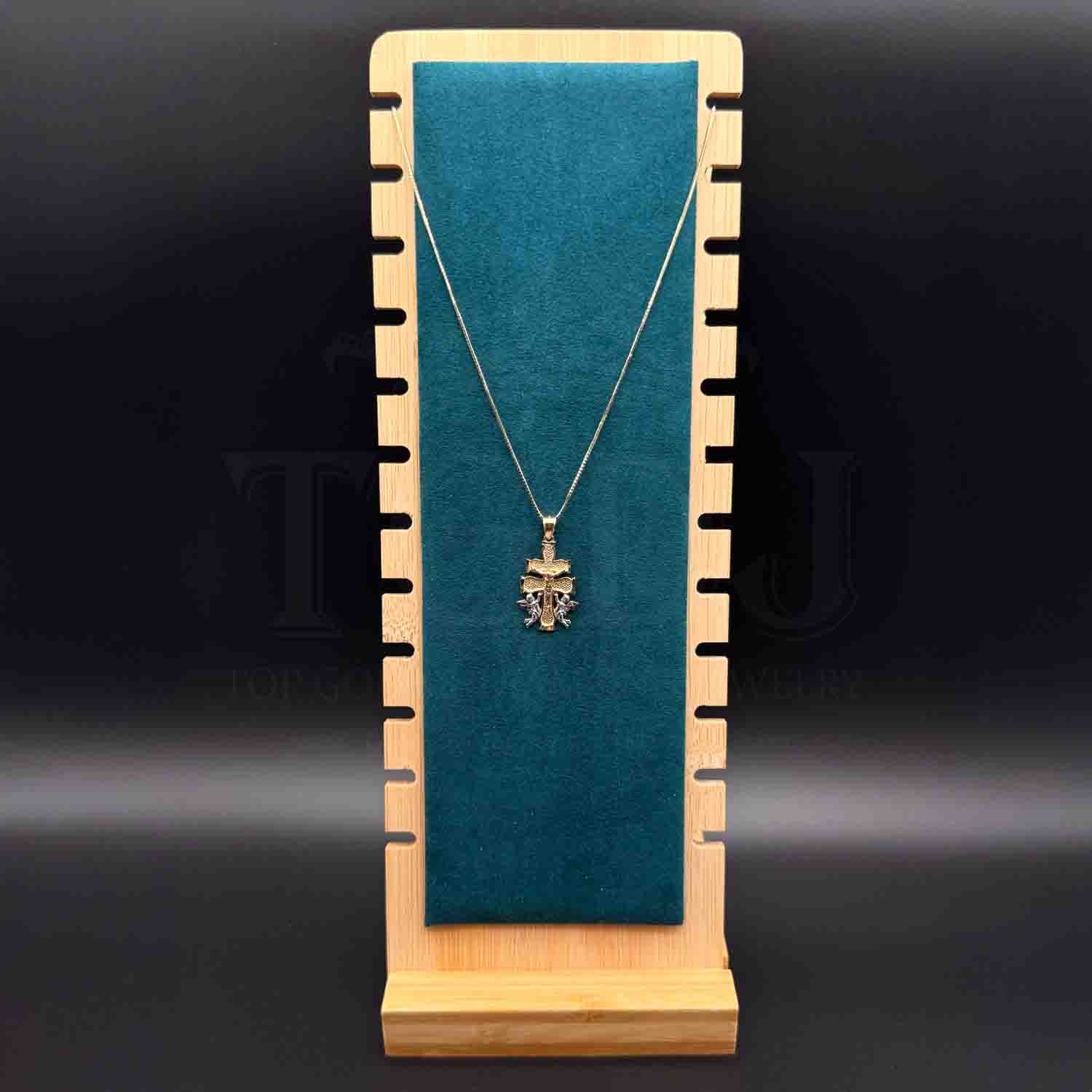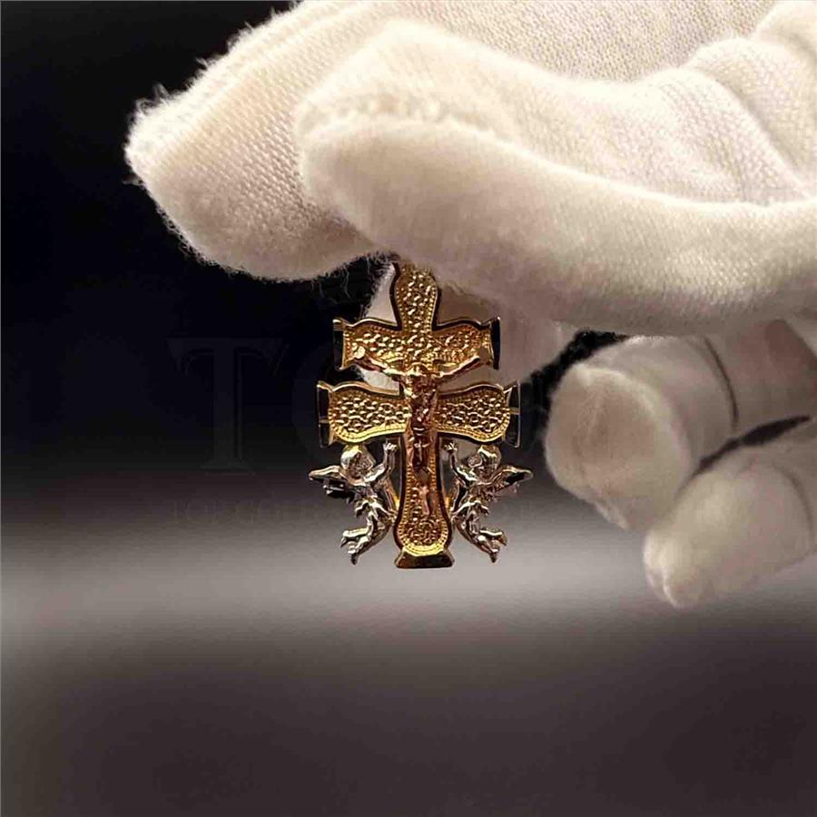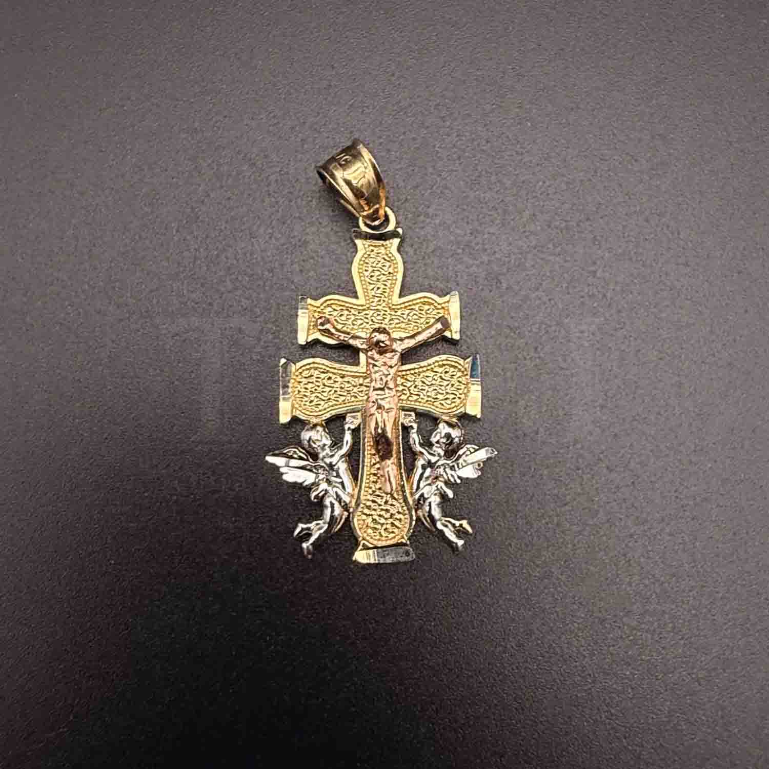 14K Tri Color Gold Religious Cross of Caravaca Pendant