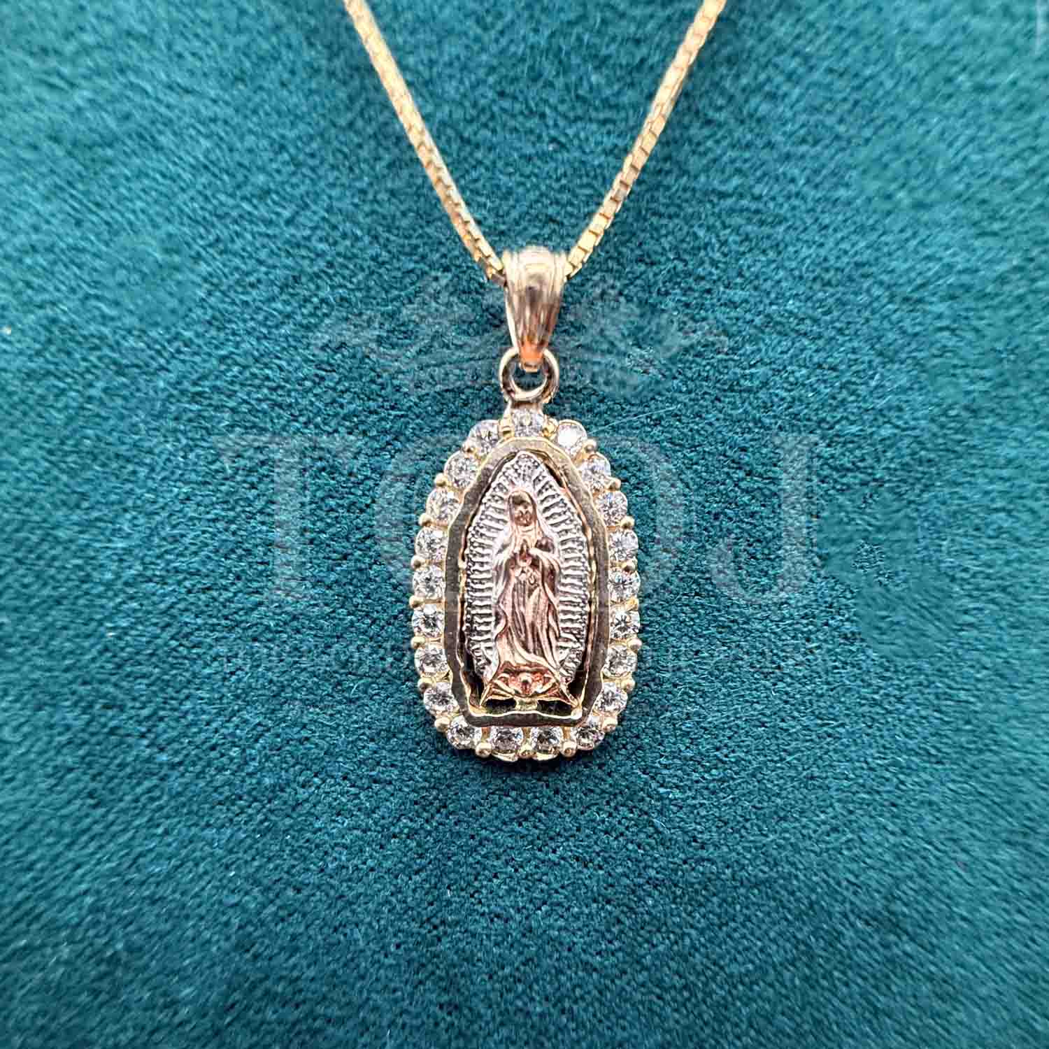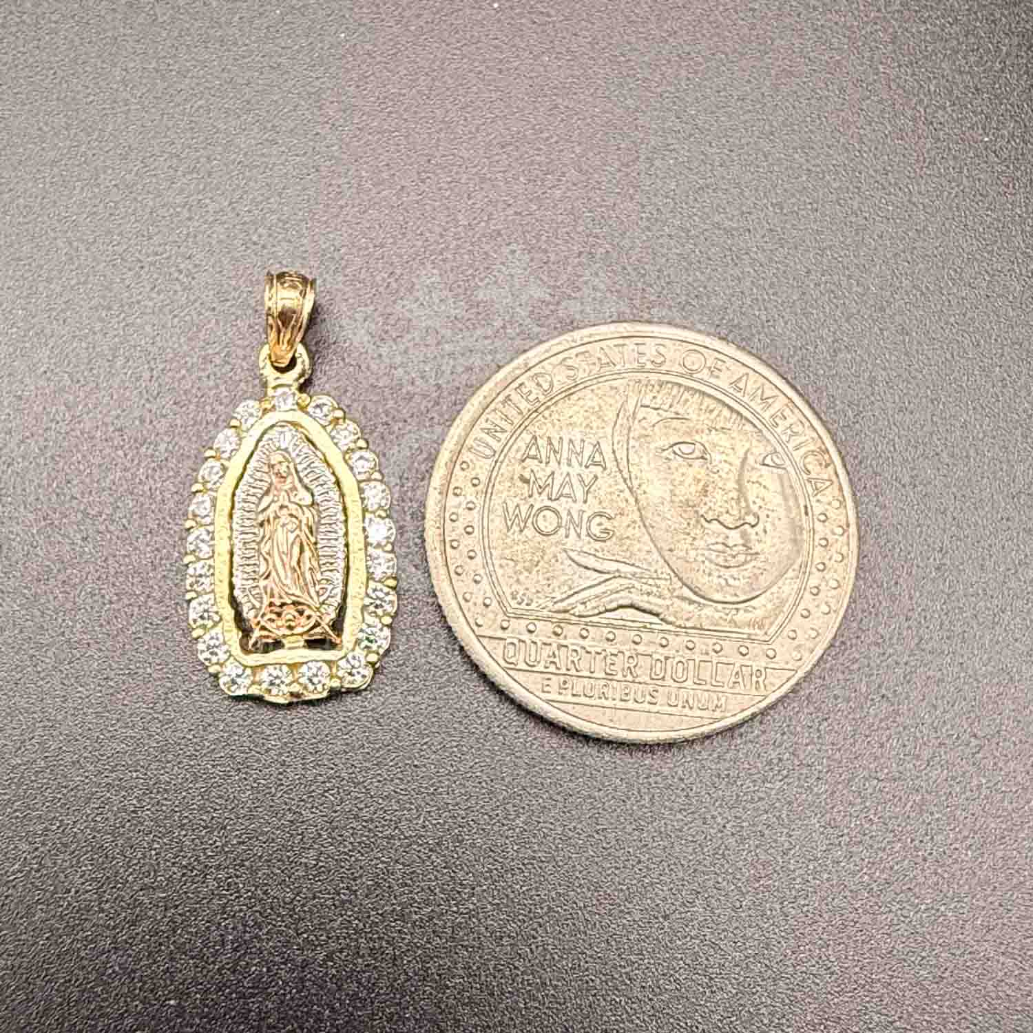 14K Tri Color Gold Religious cubic zirconia Our Lady of Guadalupe Pendant