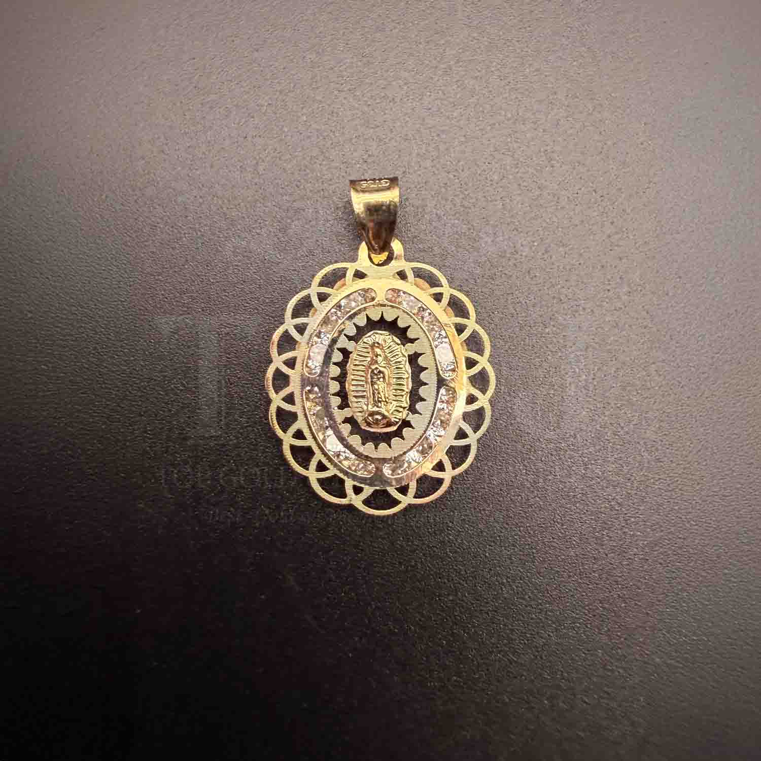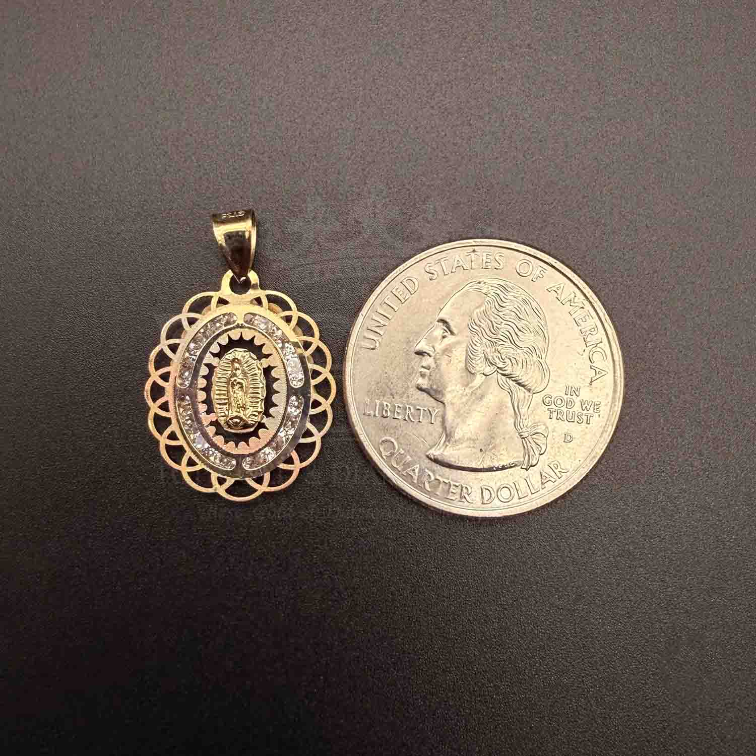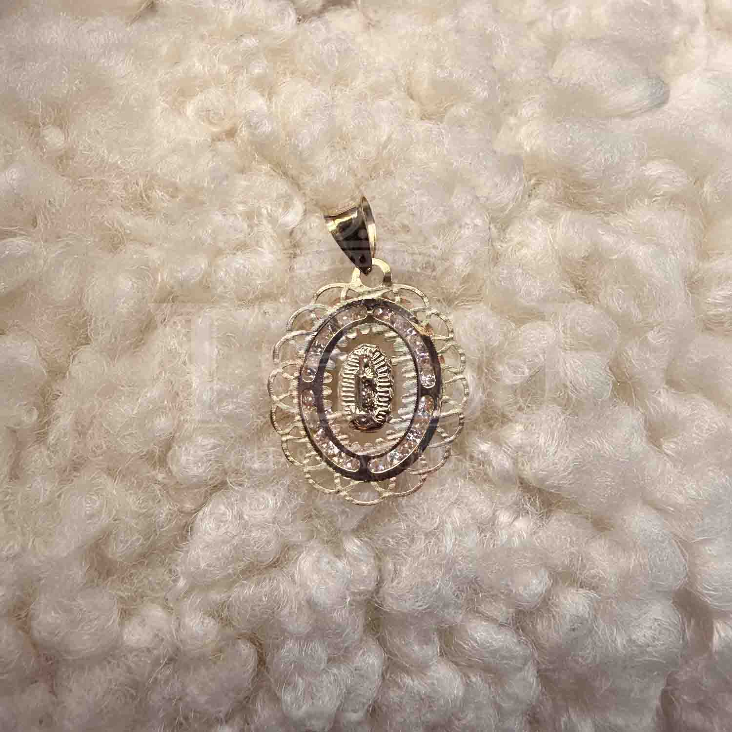 14K Tri Color Gold Religious Guadalupe cubic zirconia Medal Pendant