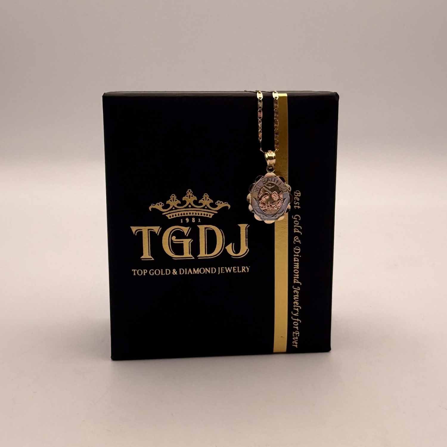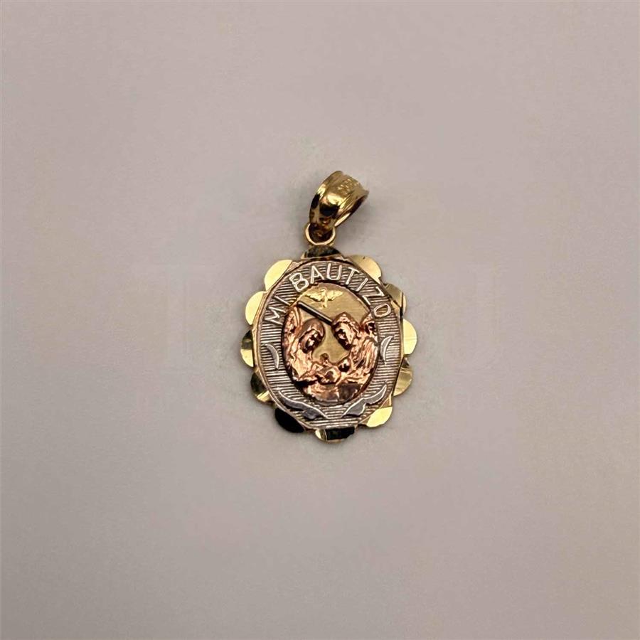 14K Tri Color Gold Religious Mi Bautizo Pendant Oval