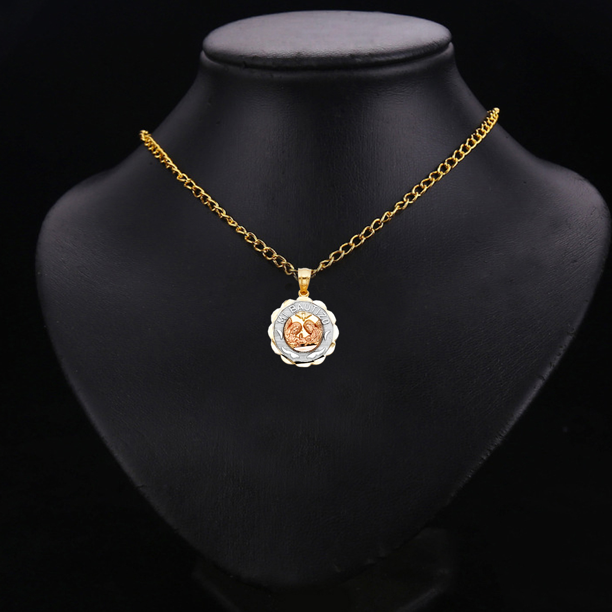 14K Tri Color Gold Religious Mi Bautizo Pendant Round Pendant
