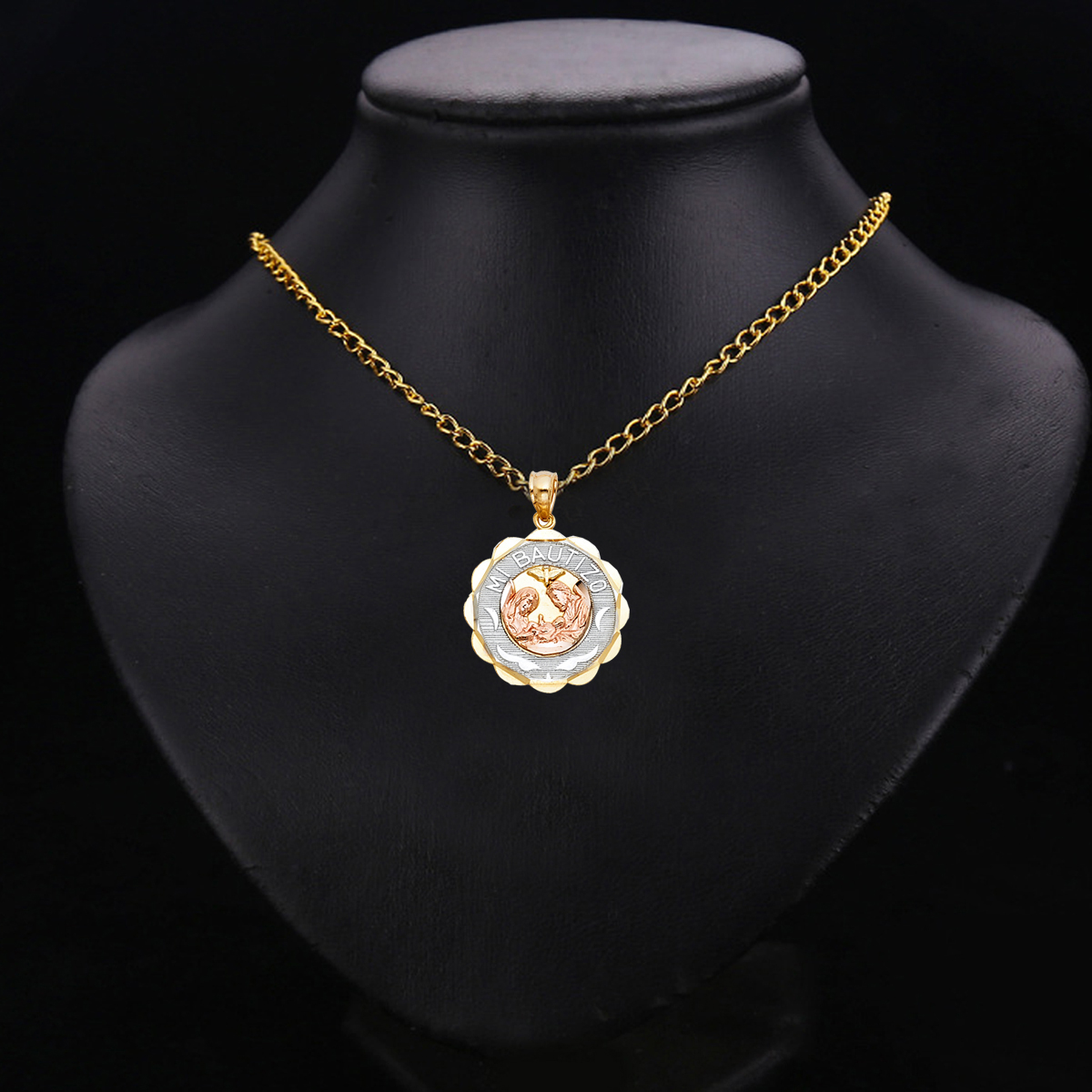 14K Tri Color Gold Religious SMi Bautizo Pendant Round amp Pendant