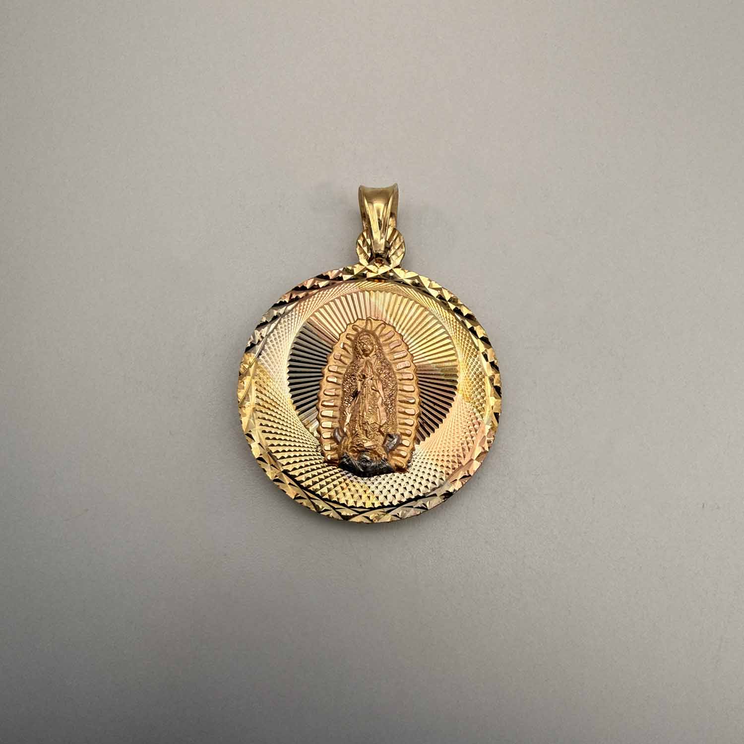 14K Tri Color Gold Religious Stamp Pendant