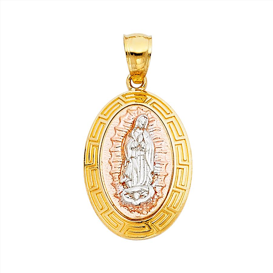 14K Tri Color Yellow Rose White Gold Religious Guadalupe Pendant - 20 mm x 15 mm
