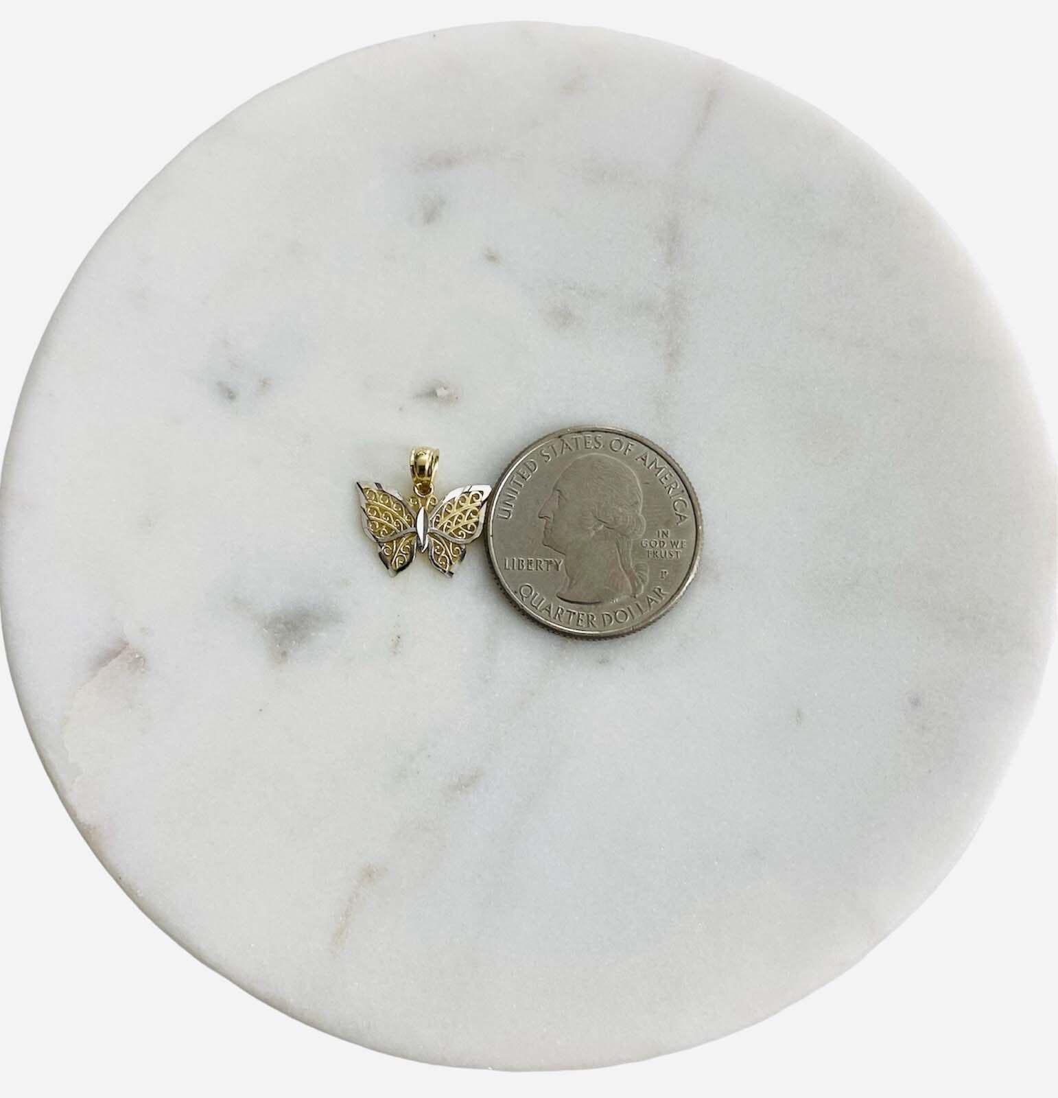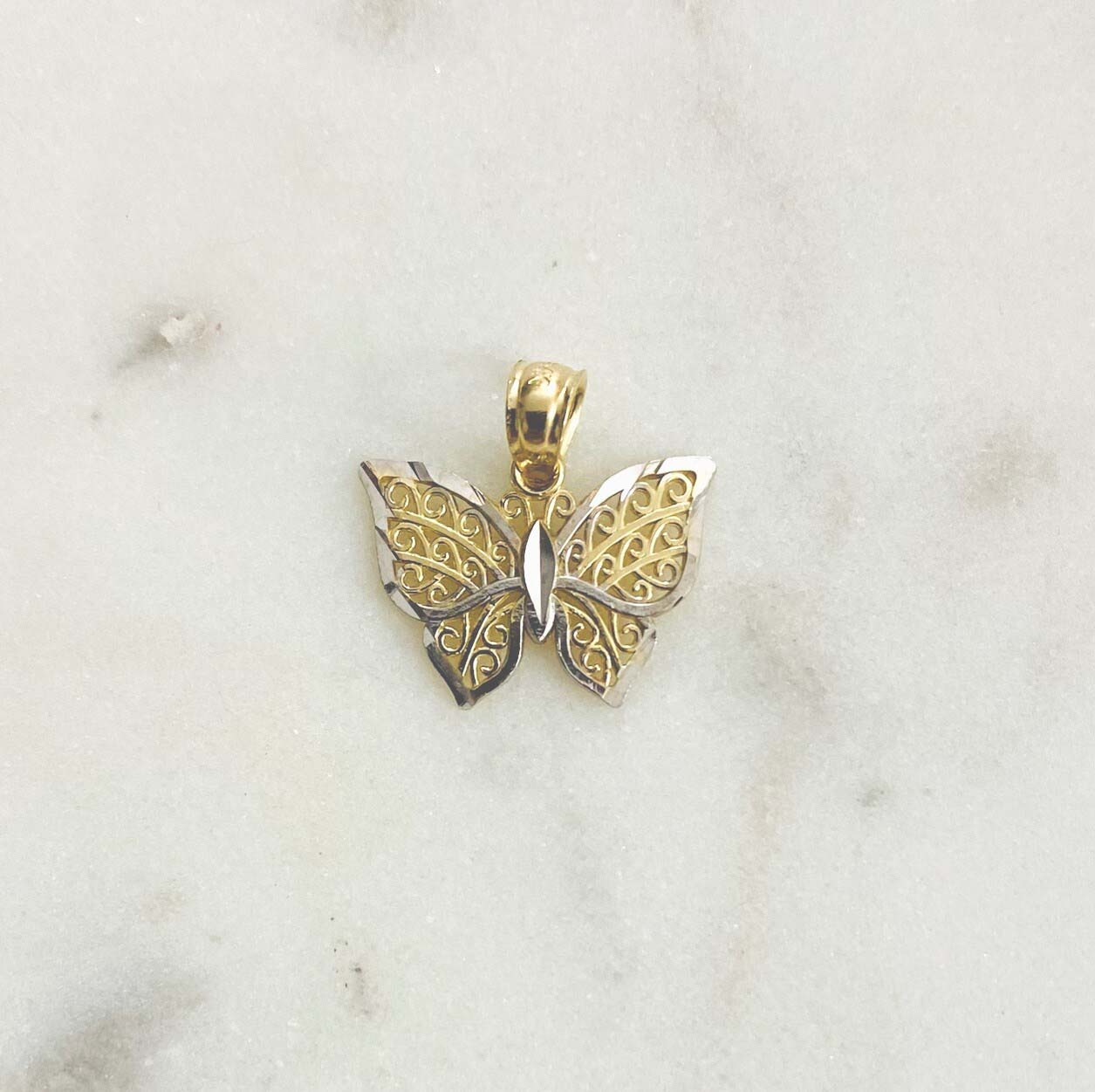 14K Two Tone Gold Butterfly Pendant