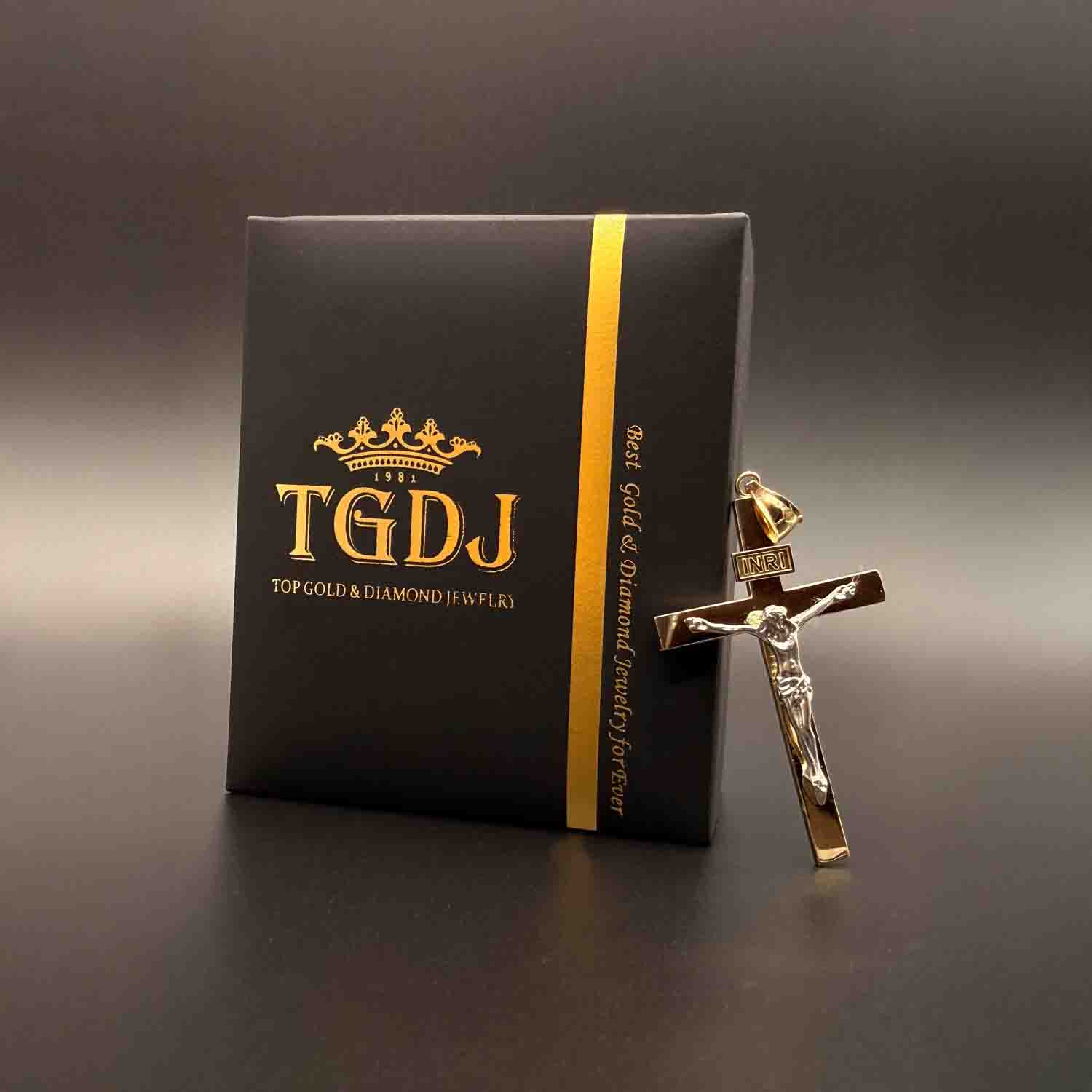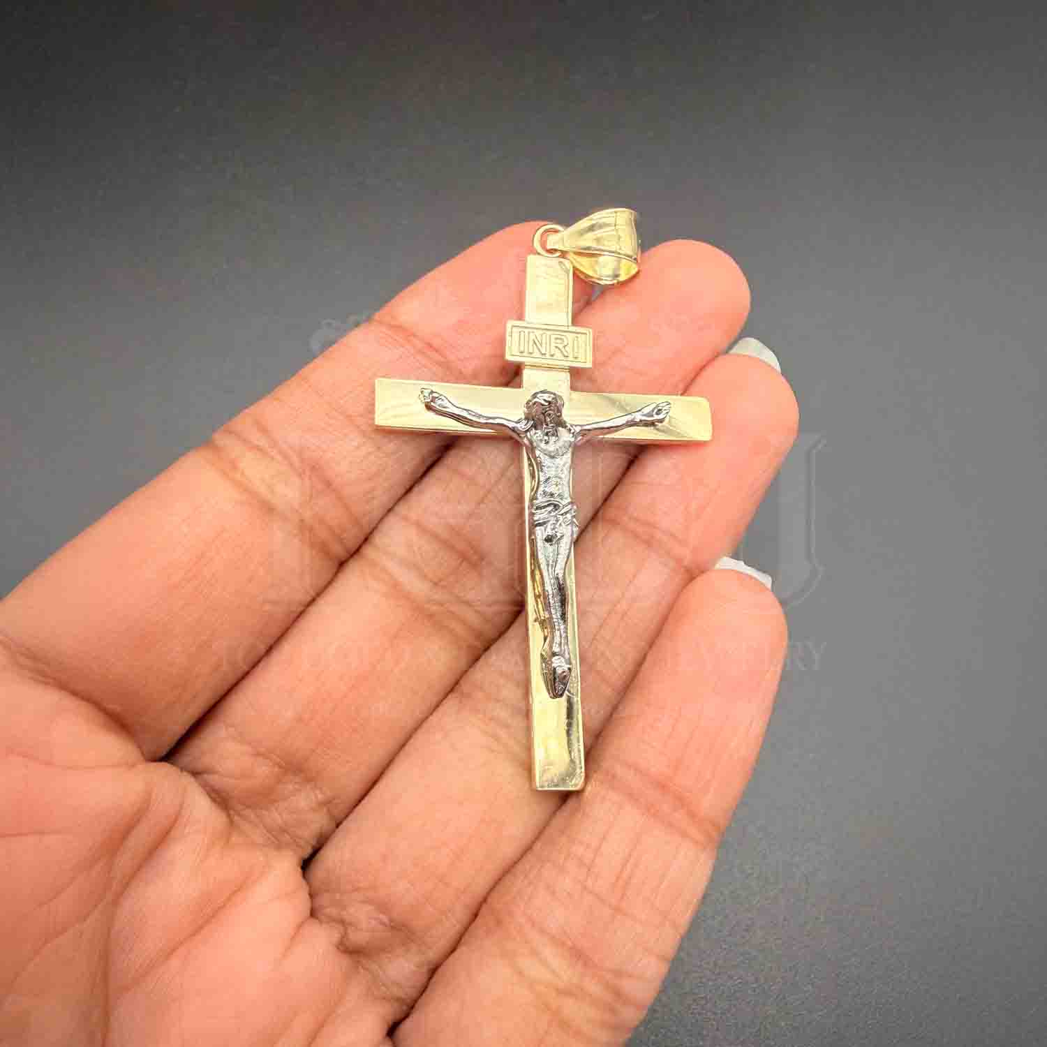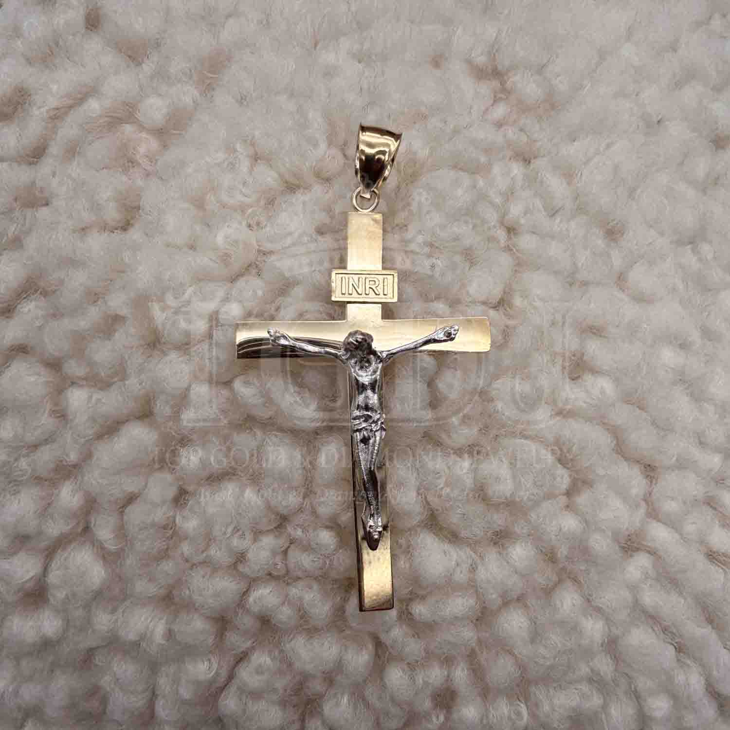 14K Two Tone Gold Crucufix Cross Pendant