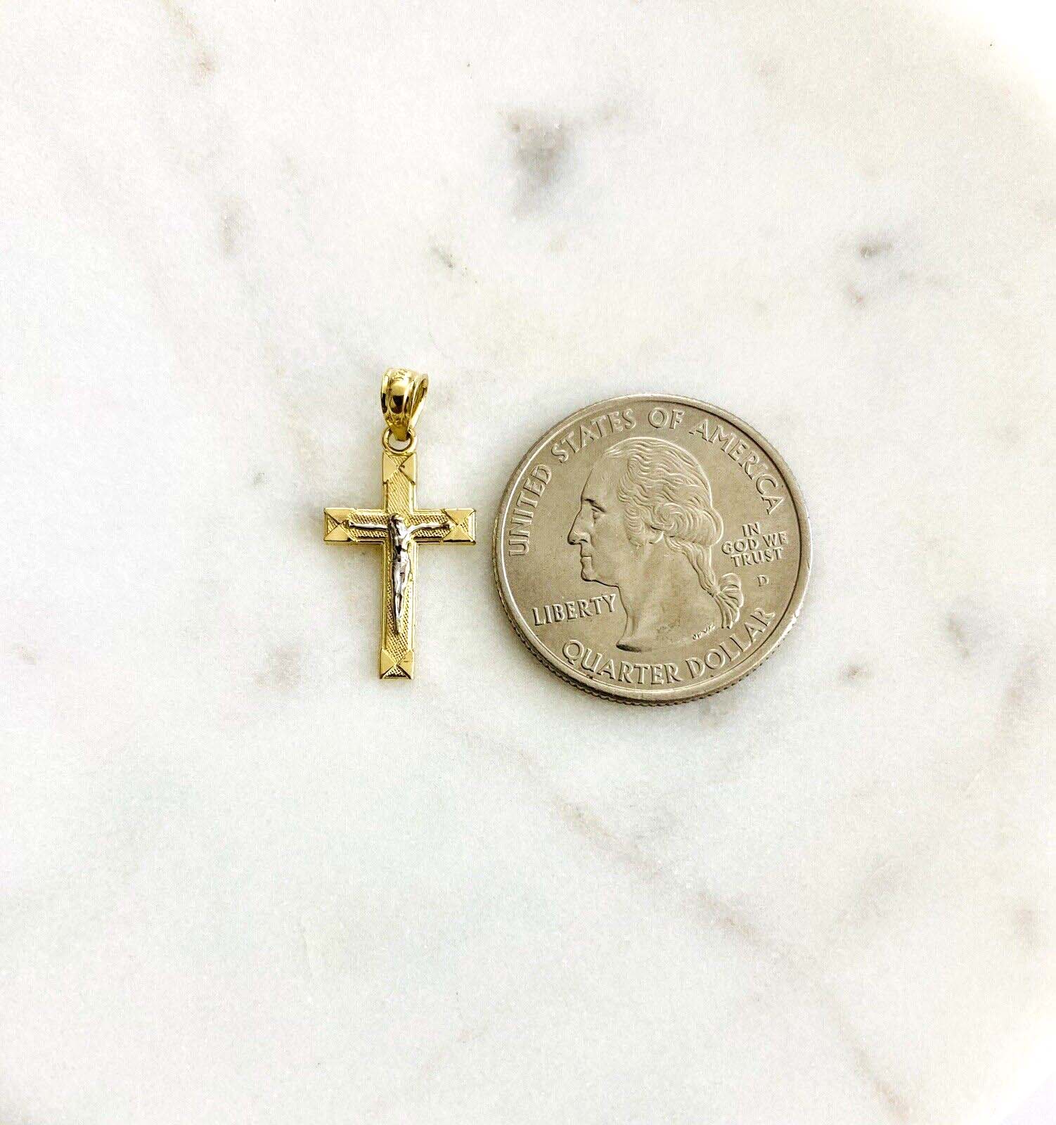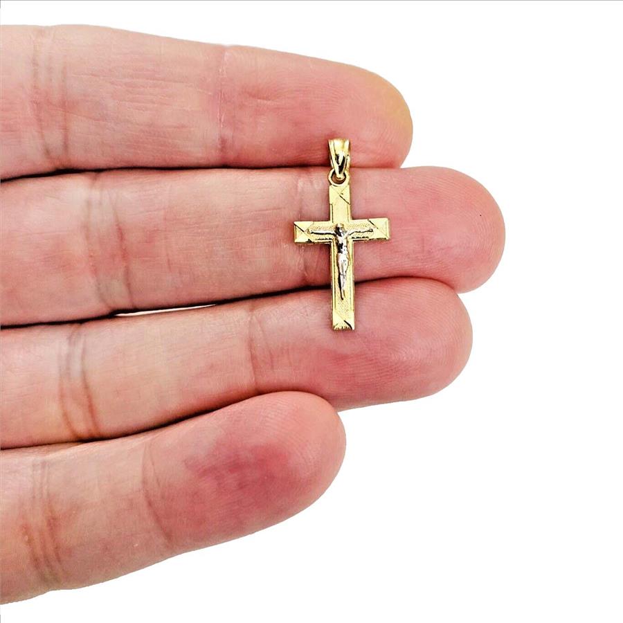 14K Two Tone Gold Crucufix Cross Pendant