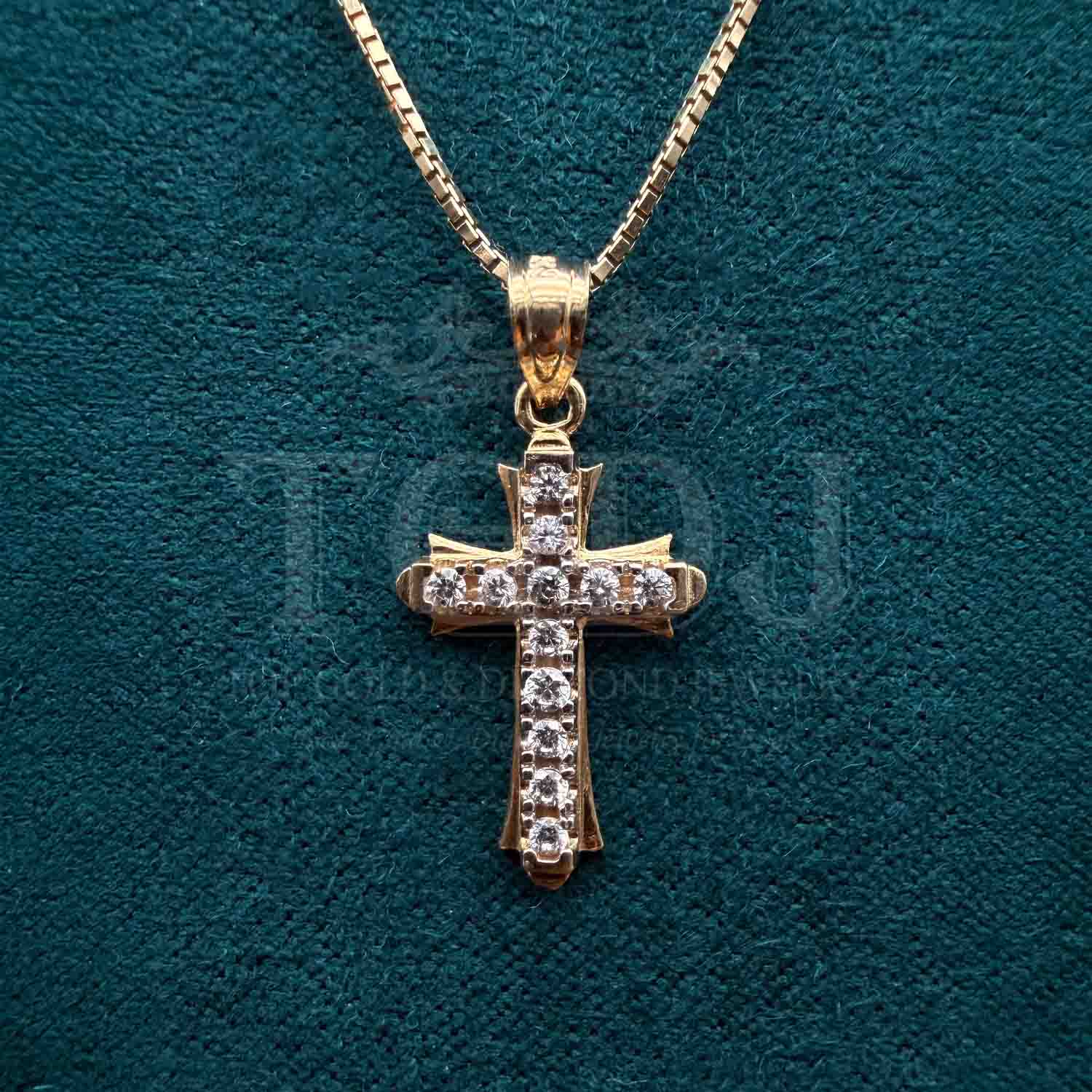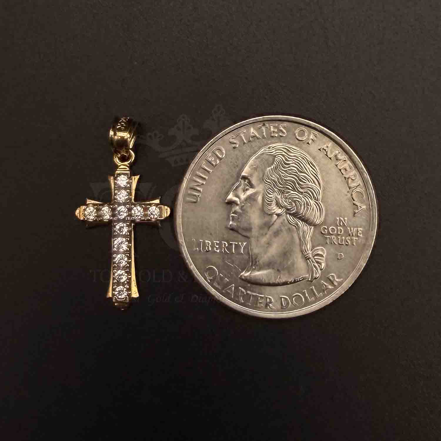 14K Two Tone Gold cubic zirconia Cross Pendant