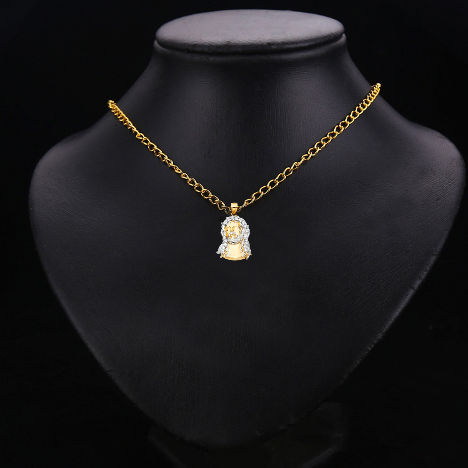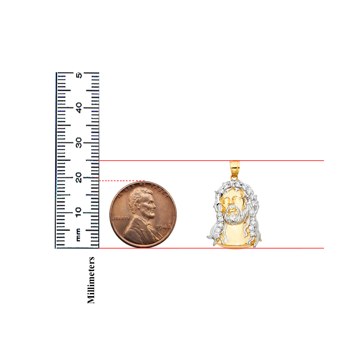14K Two Tone Gold cubic zirconia Jesus Christ Head Pendant