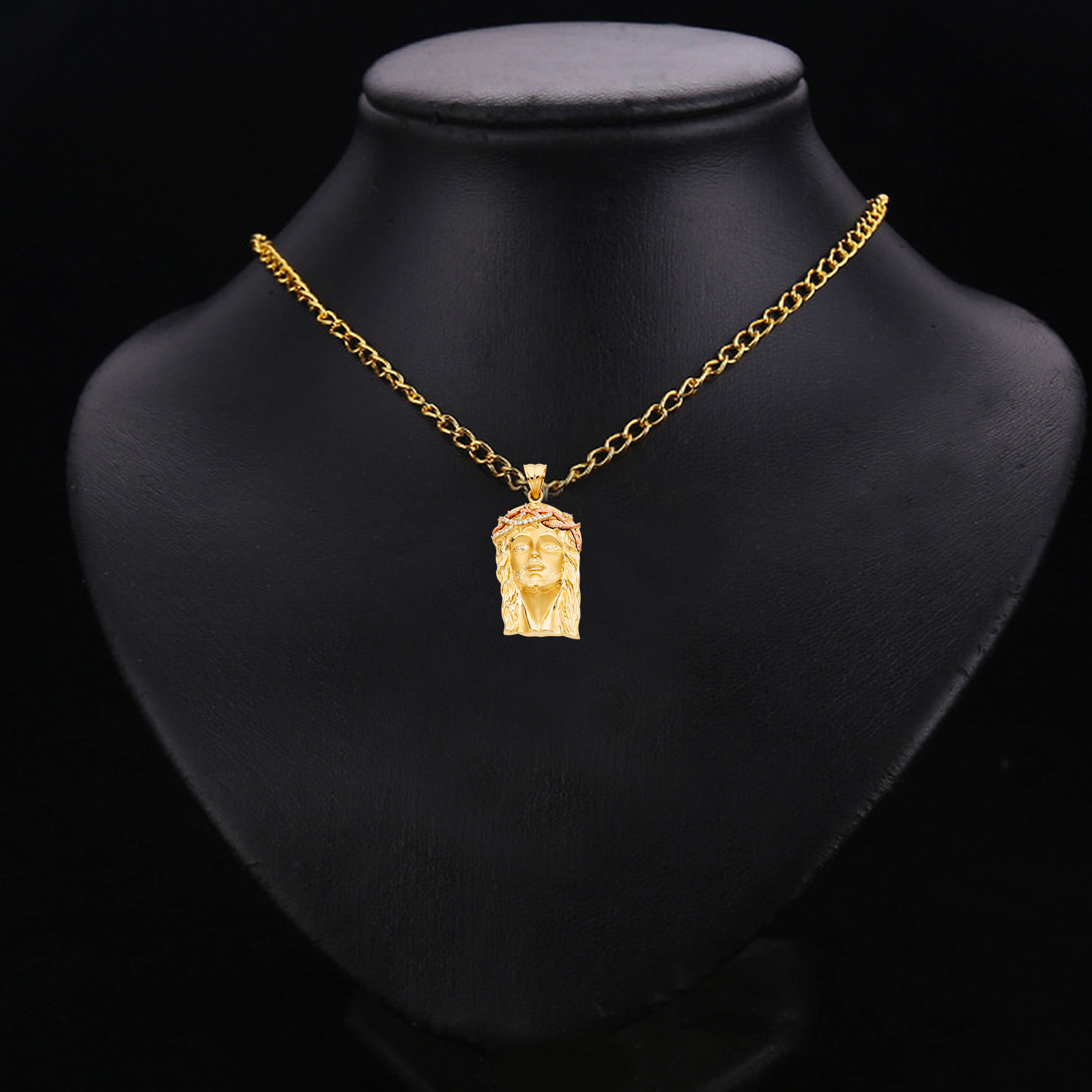 14K Two Tone Gold Cubic zirconia Jesus Christ Head Pendant