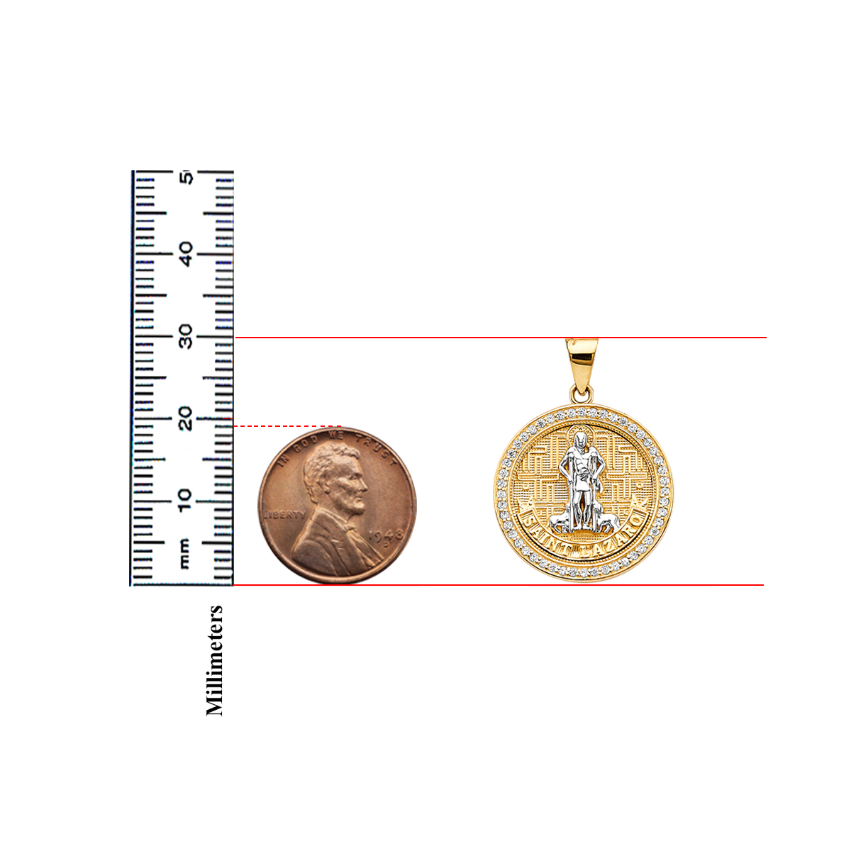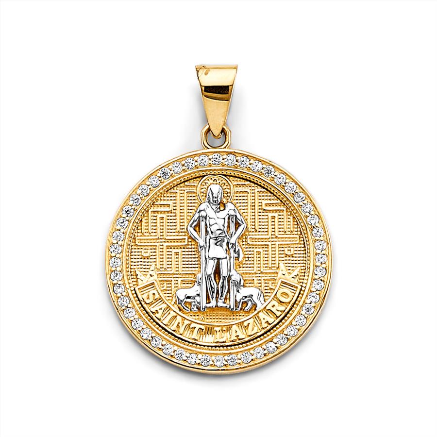 14K Two Tone Gold cubic zirconia Round San Lazaro Pendant