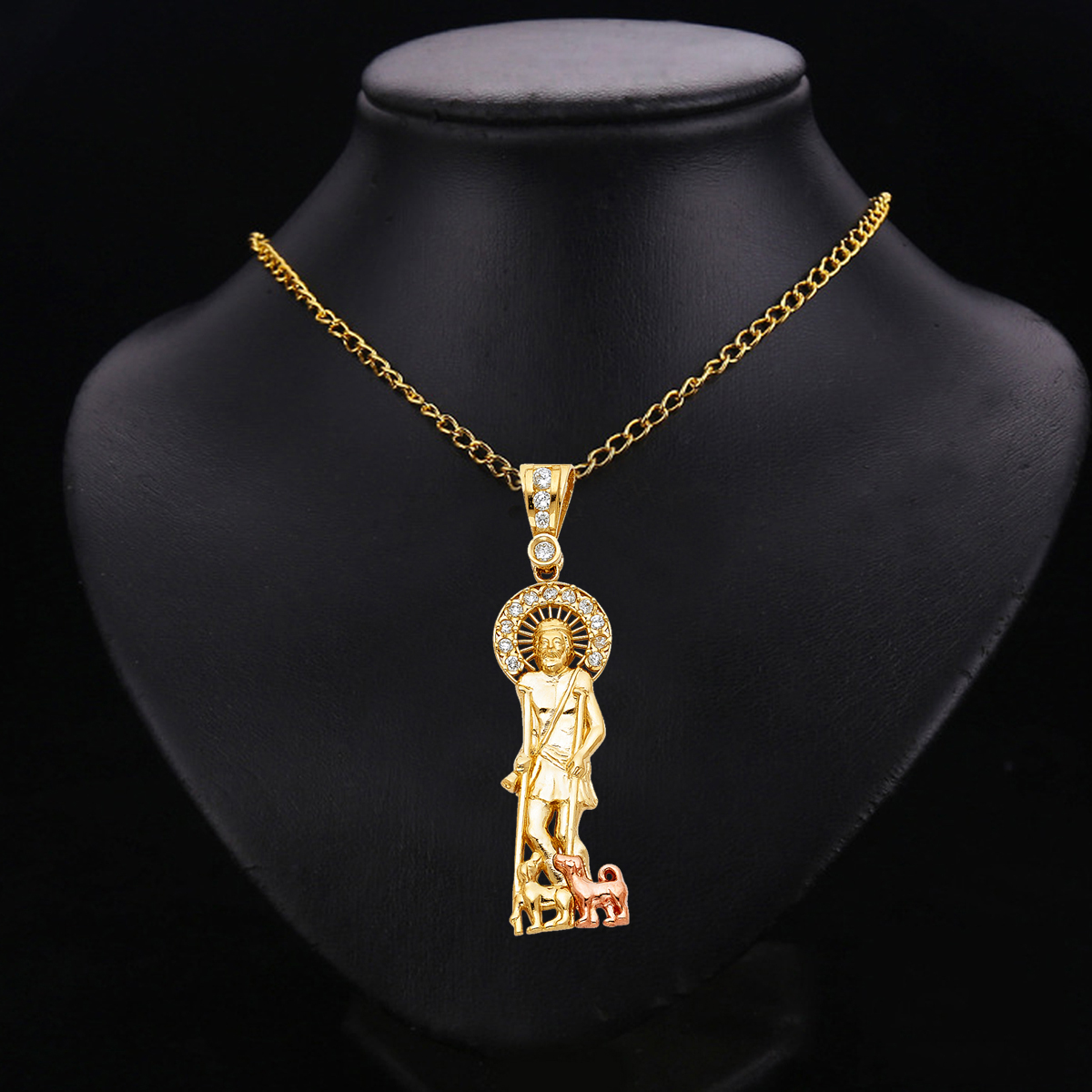 14K Two Tone Gold Cubic zirconia San Lazaro Pendant