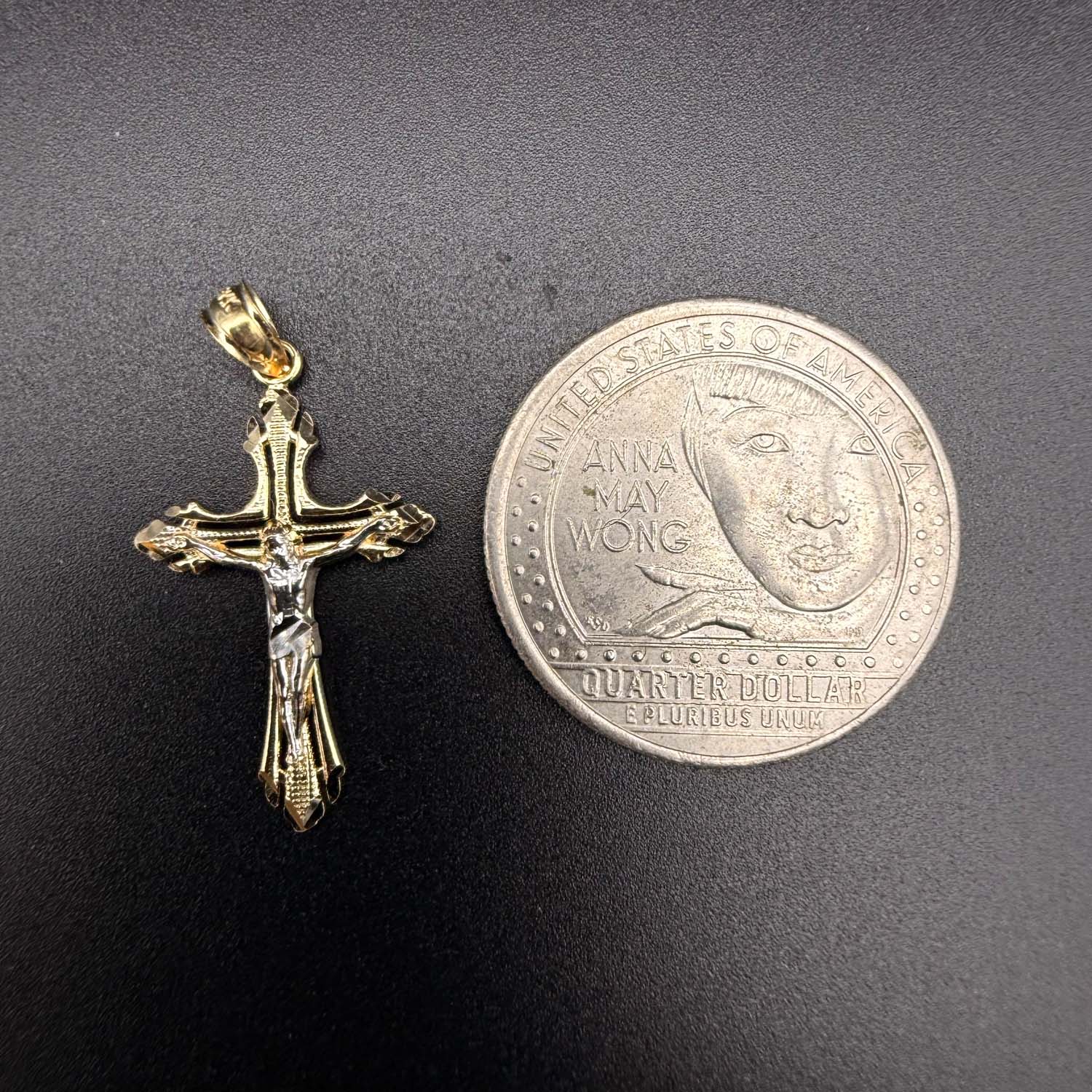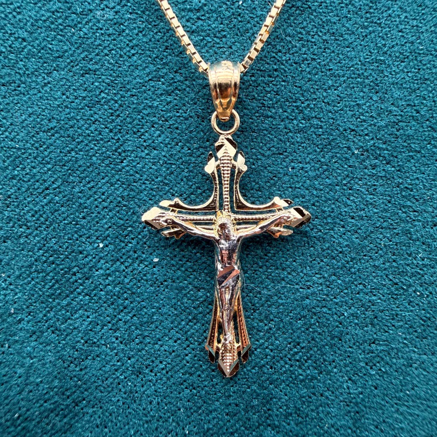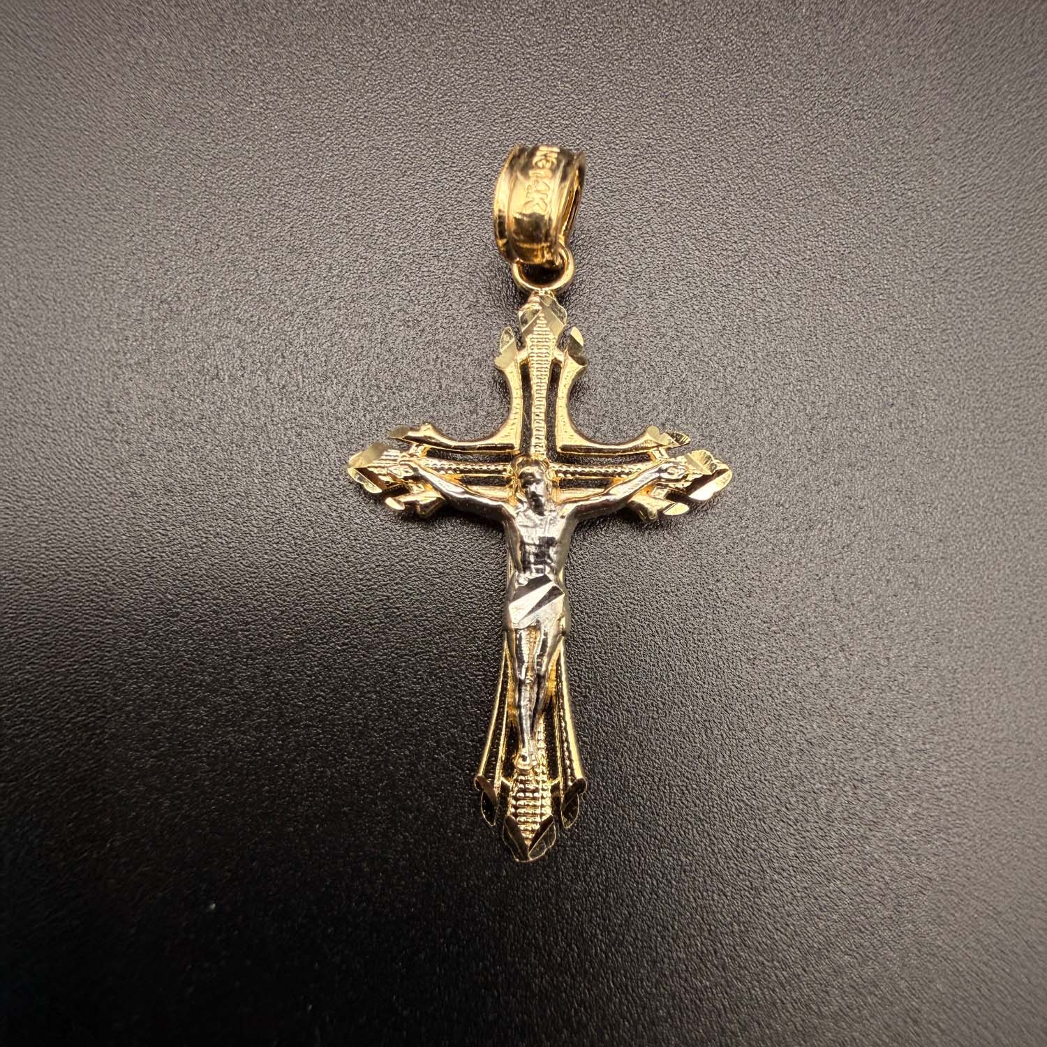 14K Two Tone Gold Cut Out Design Crucufix Pendant