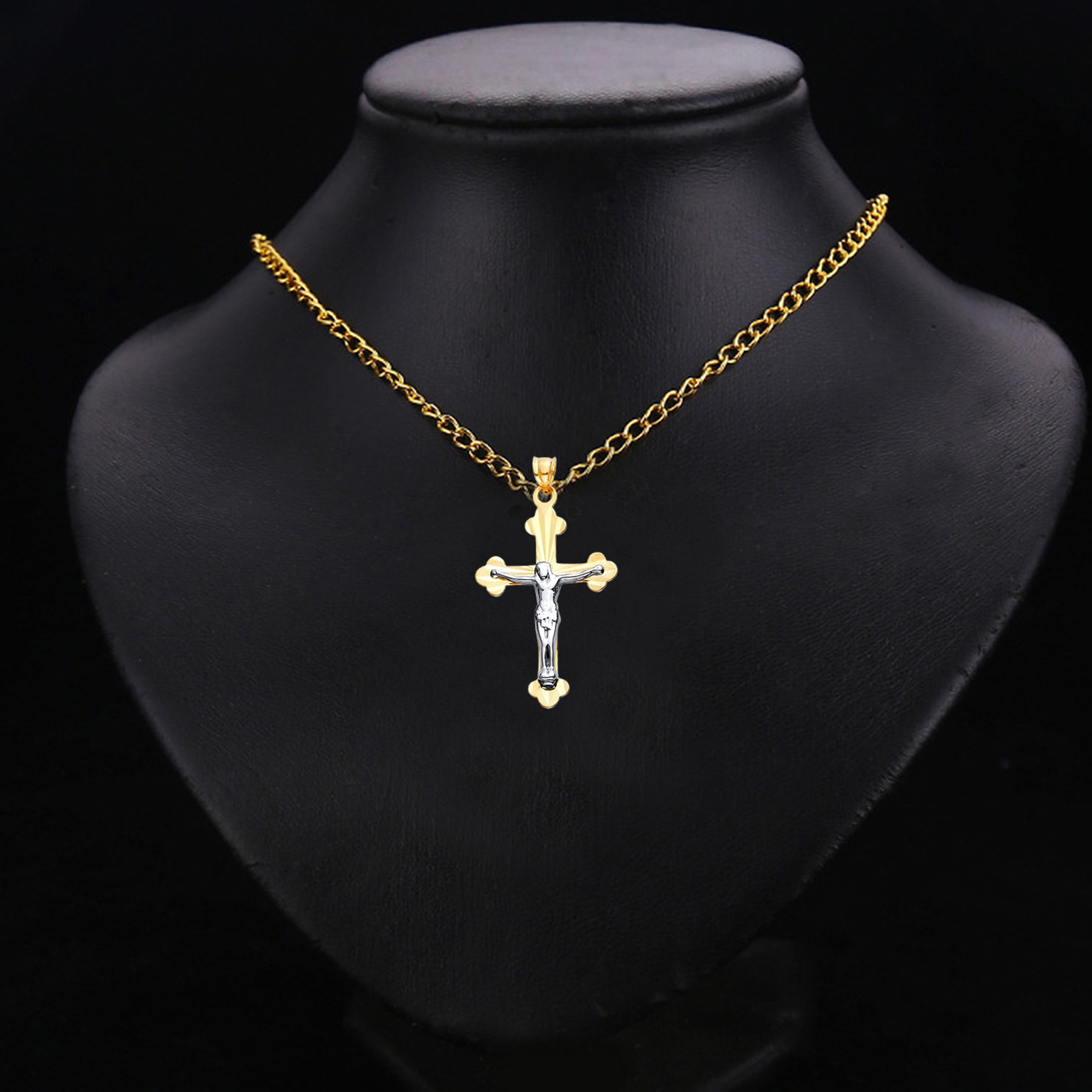 14K Two Tone Gold Diamond Cut Cross with Jesus Pendant