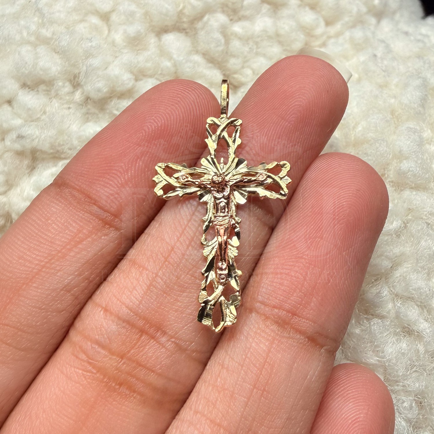 14K Two Tone Gold Crucufix Pendant