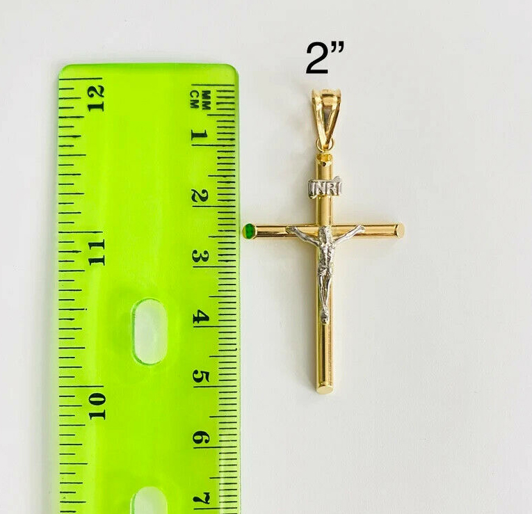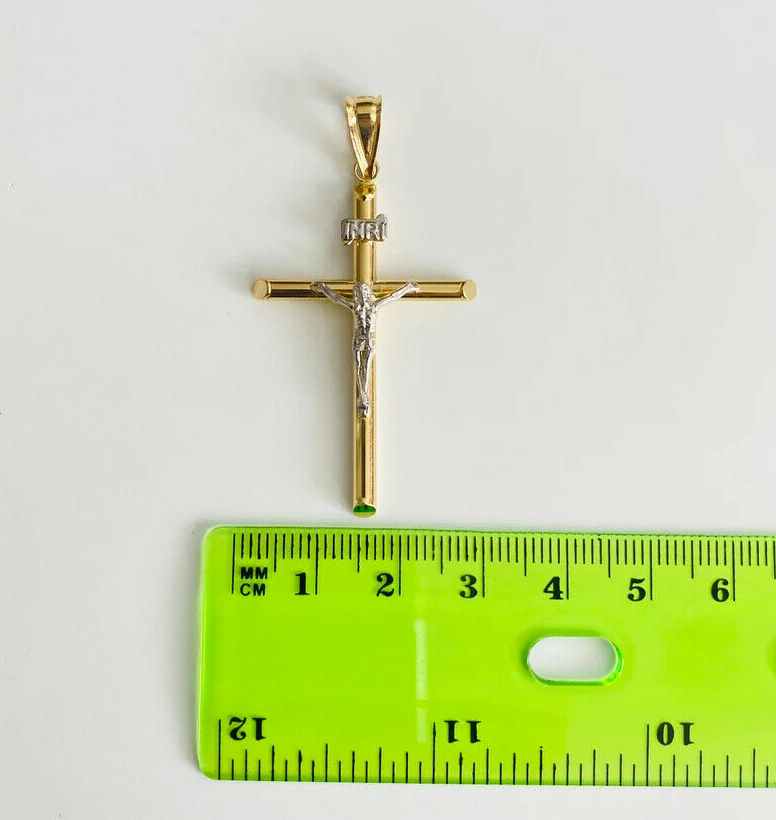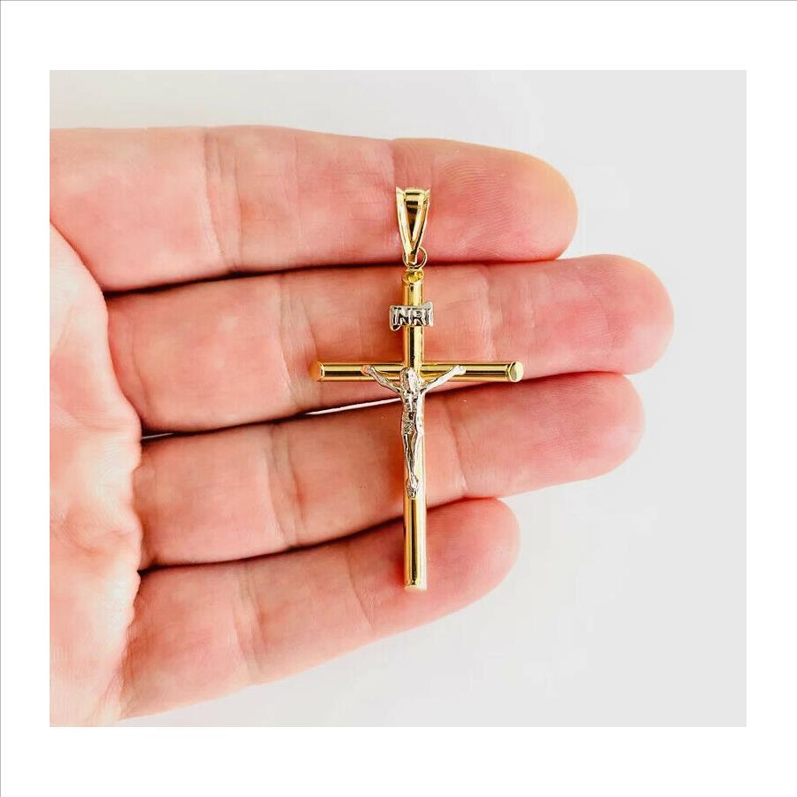 14K Two Tone Gold Hollow Round Tube Crucufix