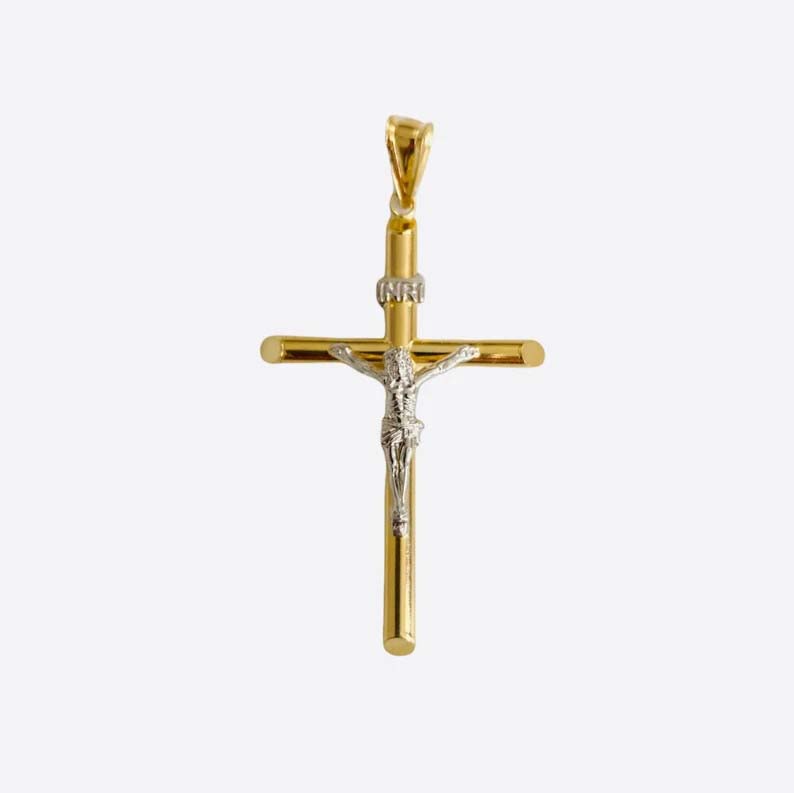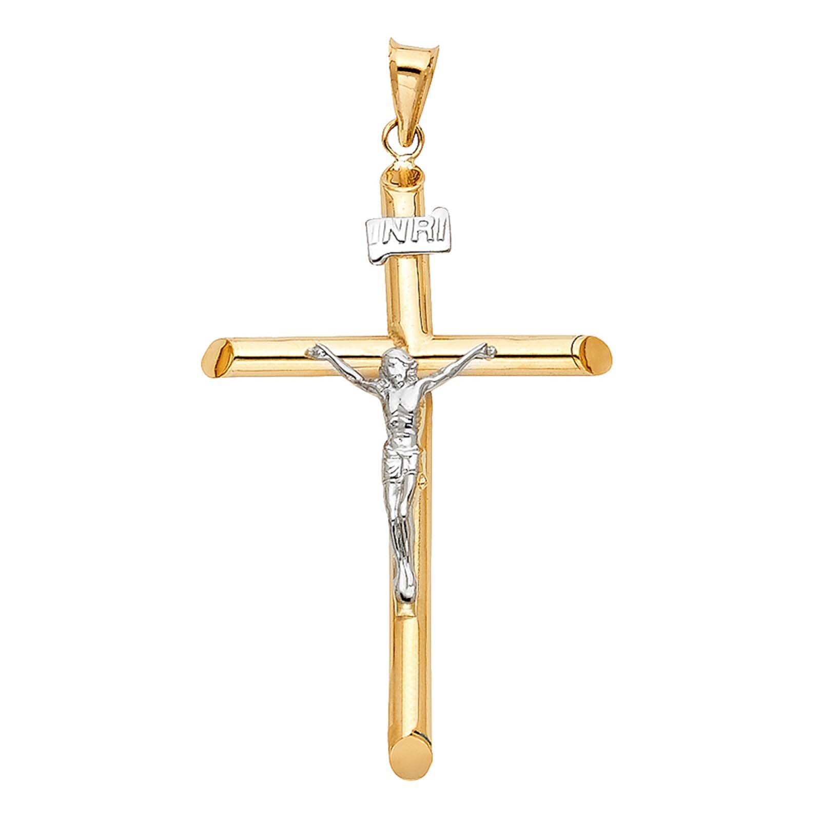 14K Two Tone Gold Hollow Round Tube Crucufix