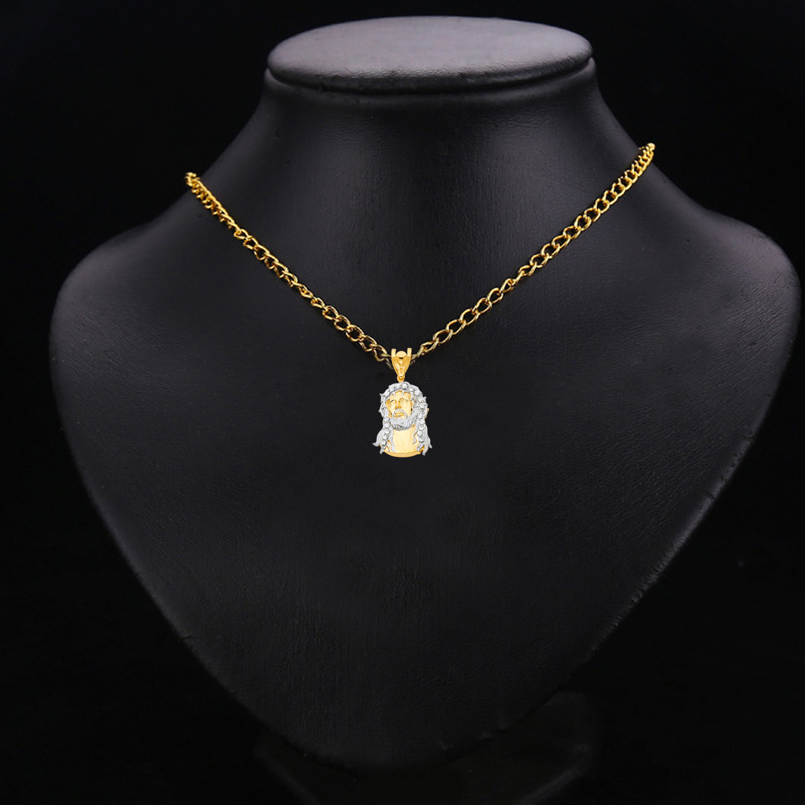14K Two Tone Gold Jesus Christ Head Pendant