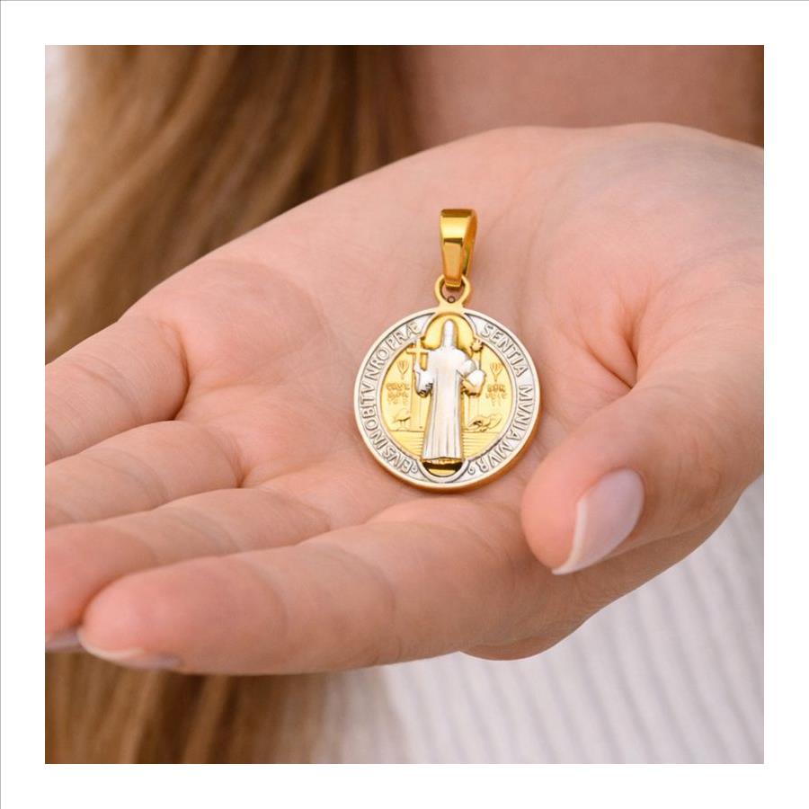14K Two Tone Gold San Benito Medal Pendant