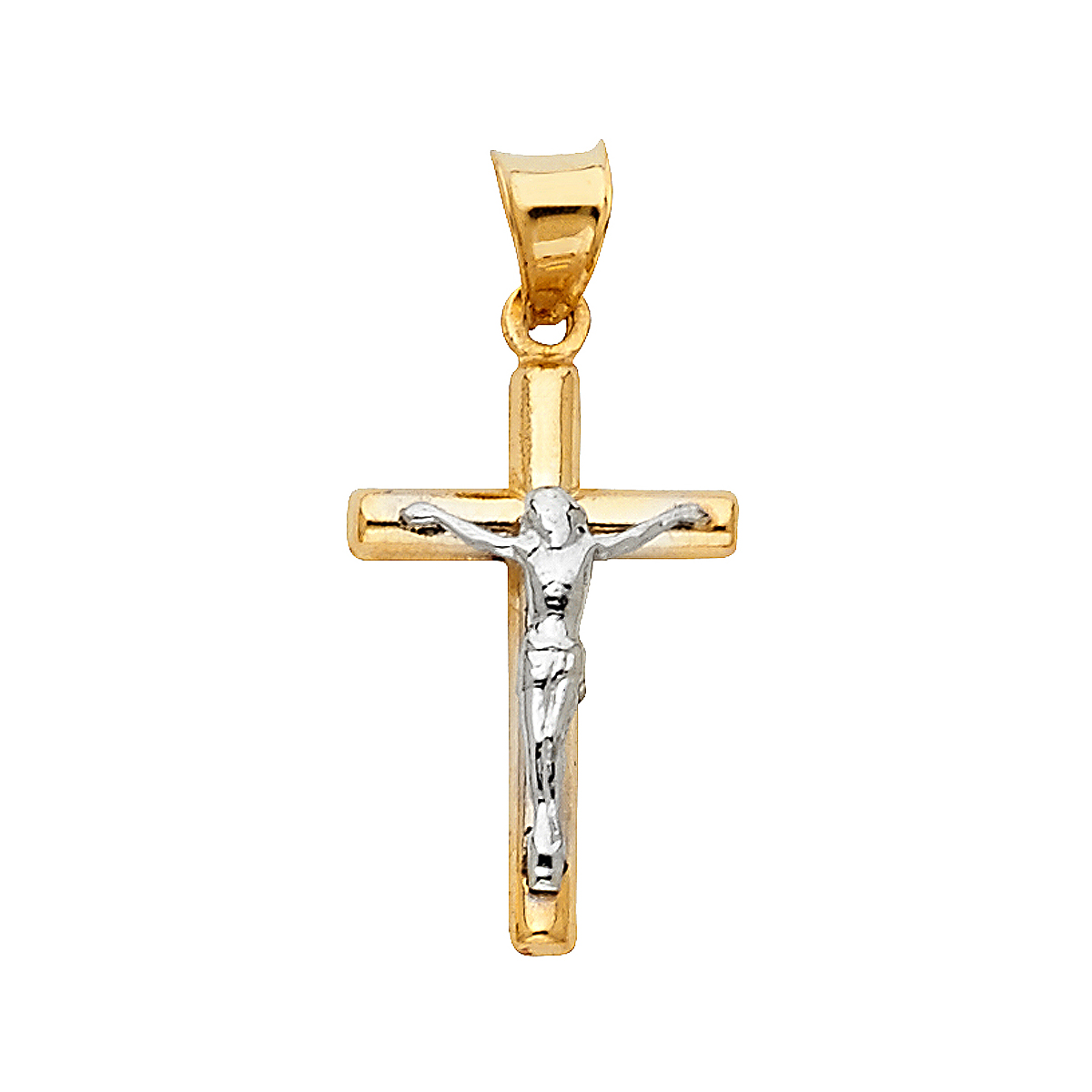 14K Two Tone Yellow and White Gold Crucifix Pendant - Suitable for Men & Women - 20 mm X 12 mm