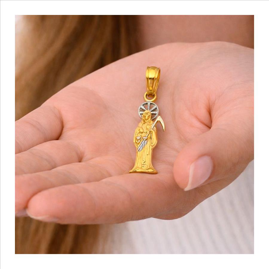 14K Two Tone Yellow and White Gold Devil Religious Pendant - 17 mm X 5 mm