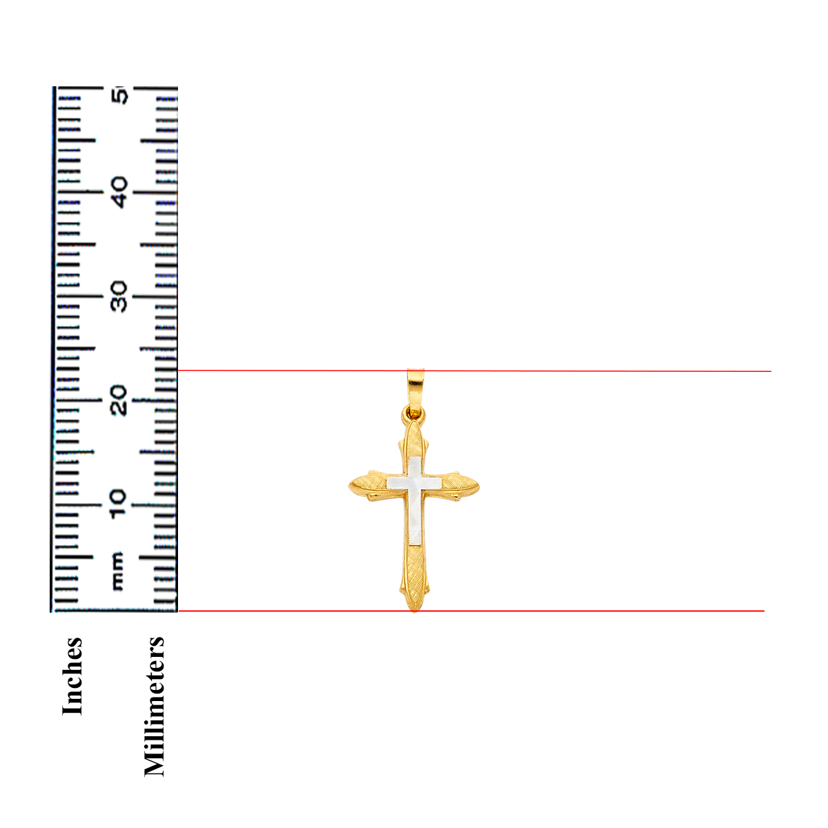 14K Two Tone Yellow and White Gold Religious Cross Pendant - 23 mm X 16 mm