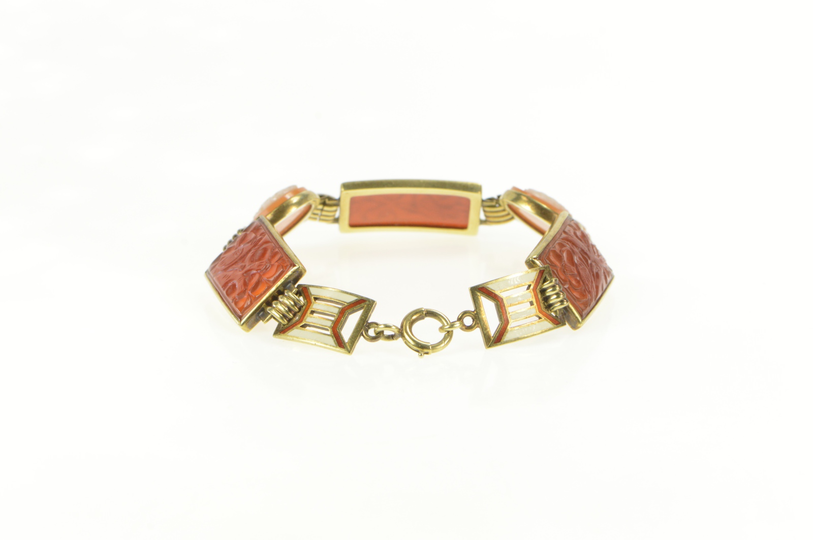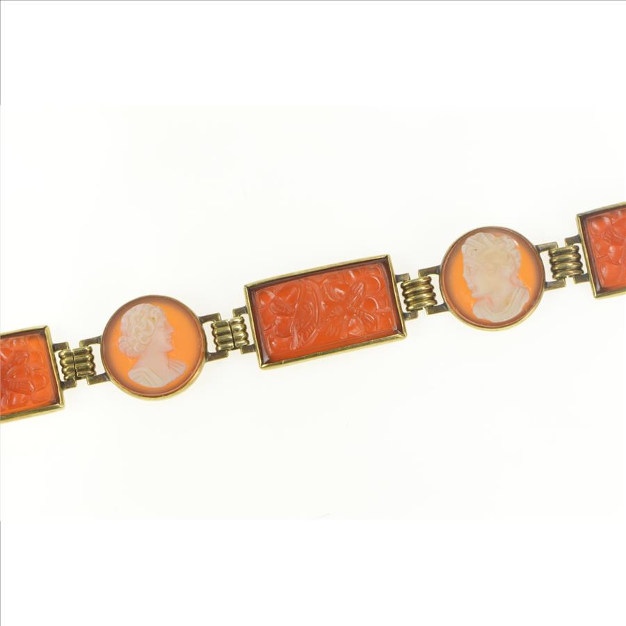Item:  14K Victorian Carnelian Cameo Floral Enamel Yellow Gold Bracelet 7.25"