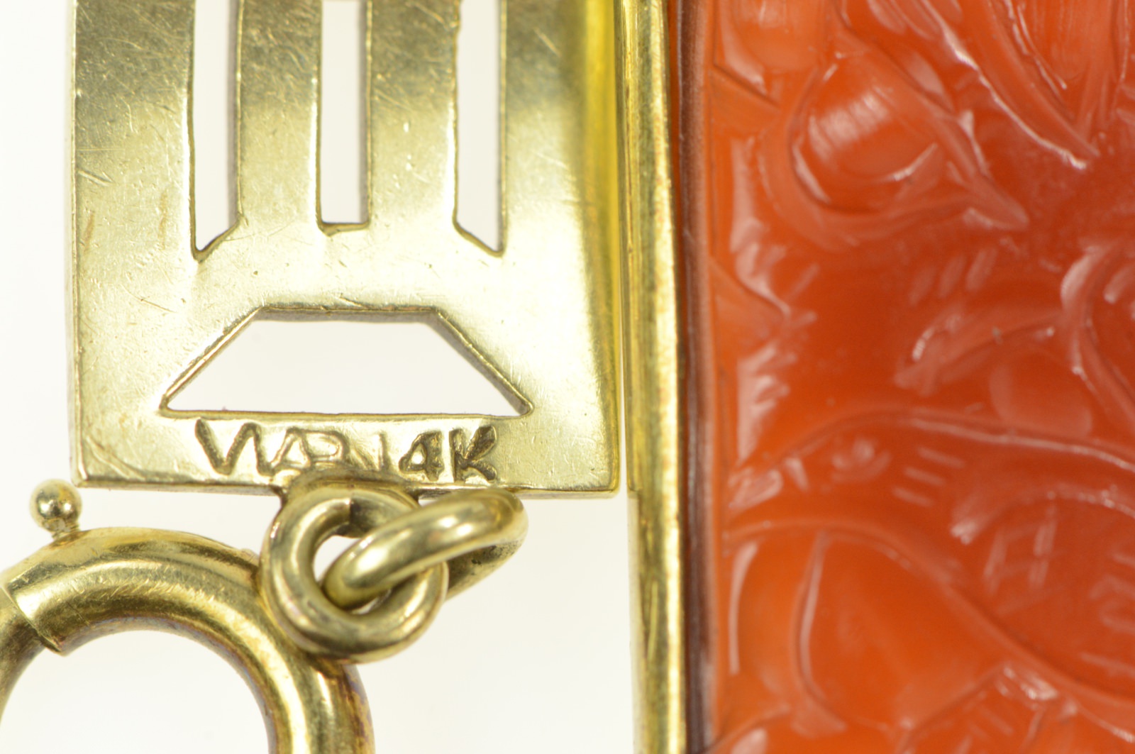 Gem Stone:  3x=Rectangular Floral Carved Carnelian 2x=Round Carnelian Carved Cameo