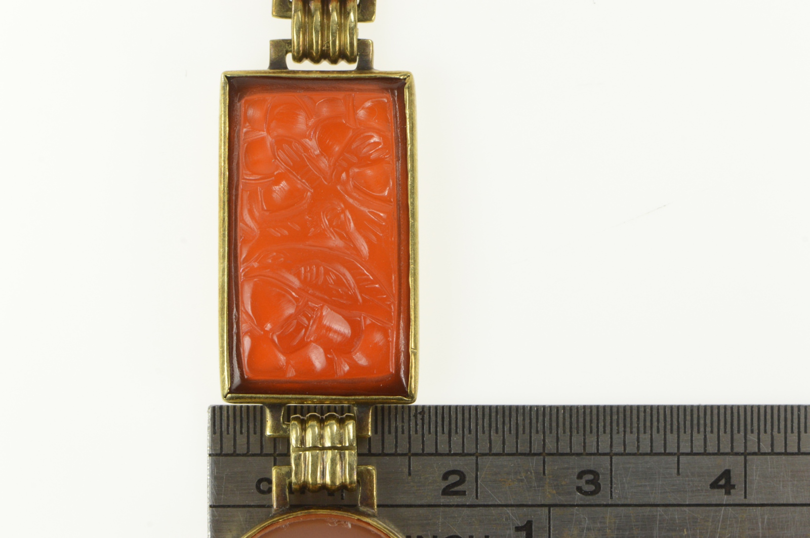 14K Victorian Carnelian Cameo Floral Enamel Yellow Gold Bracelet 7.25"