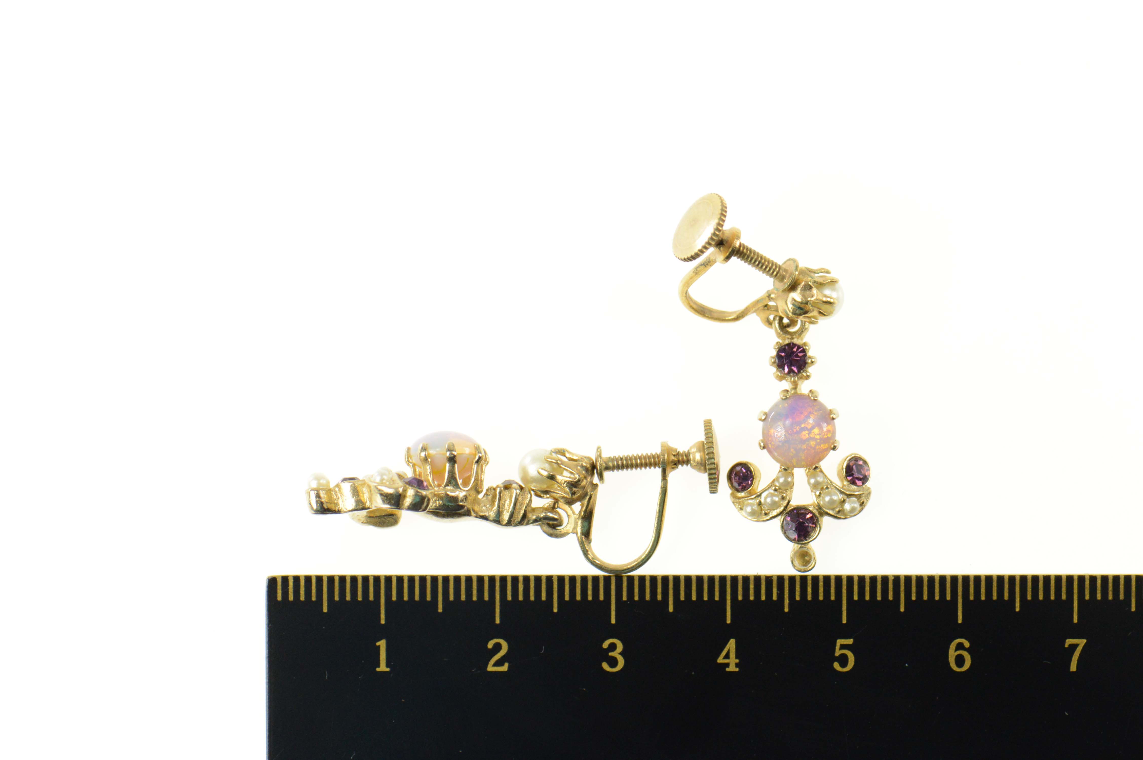 14K Victorian Pearl Amethyst Sim. Opal Dangle Yellow Gold Earrings