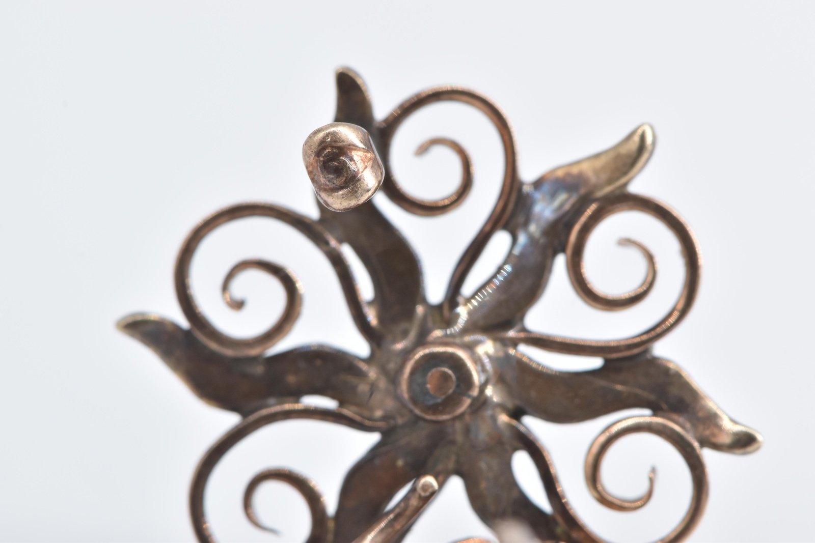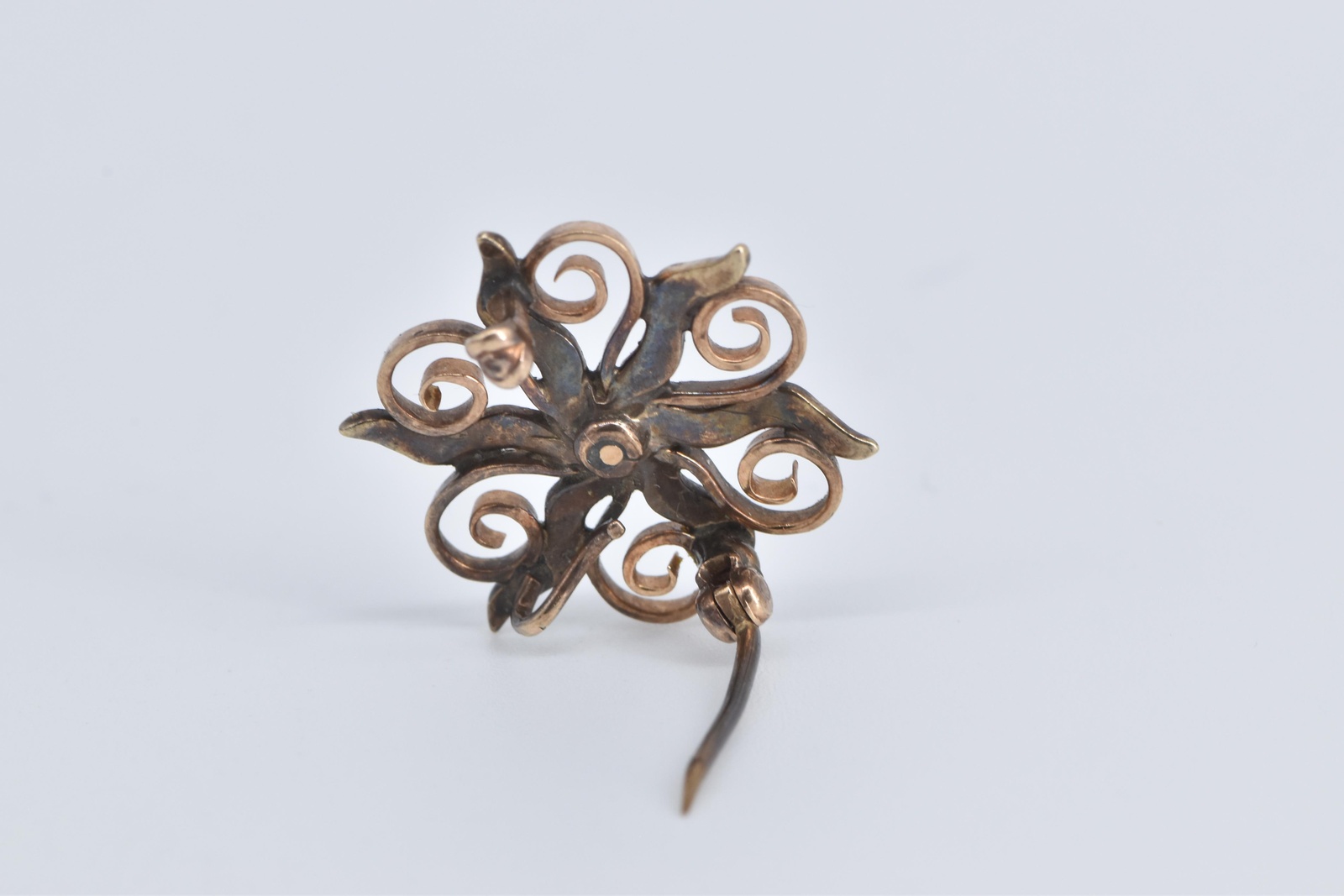 14K Victorian Seed Pearl Diamond Sun Flower Rose Gold Pin/Brooch