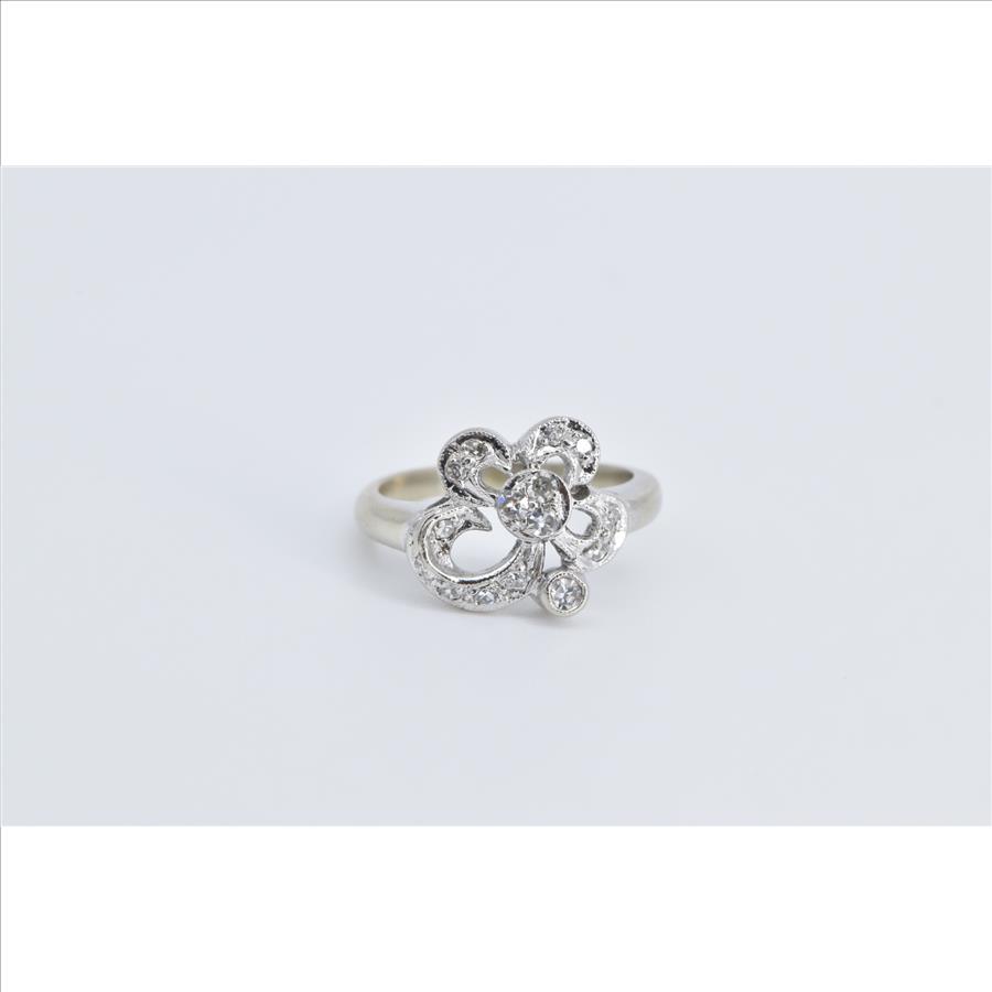 14K Vintage Diamond Bow Ribbon Flower White Gold Ring, Size 4.75