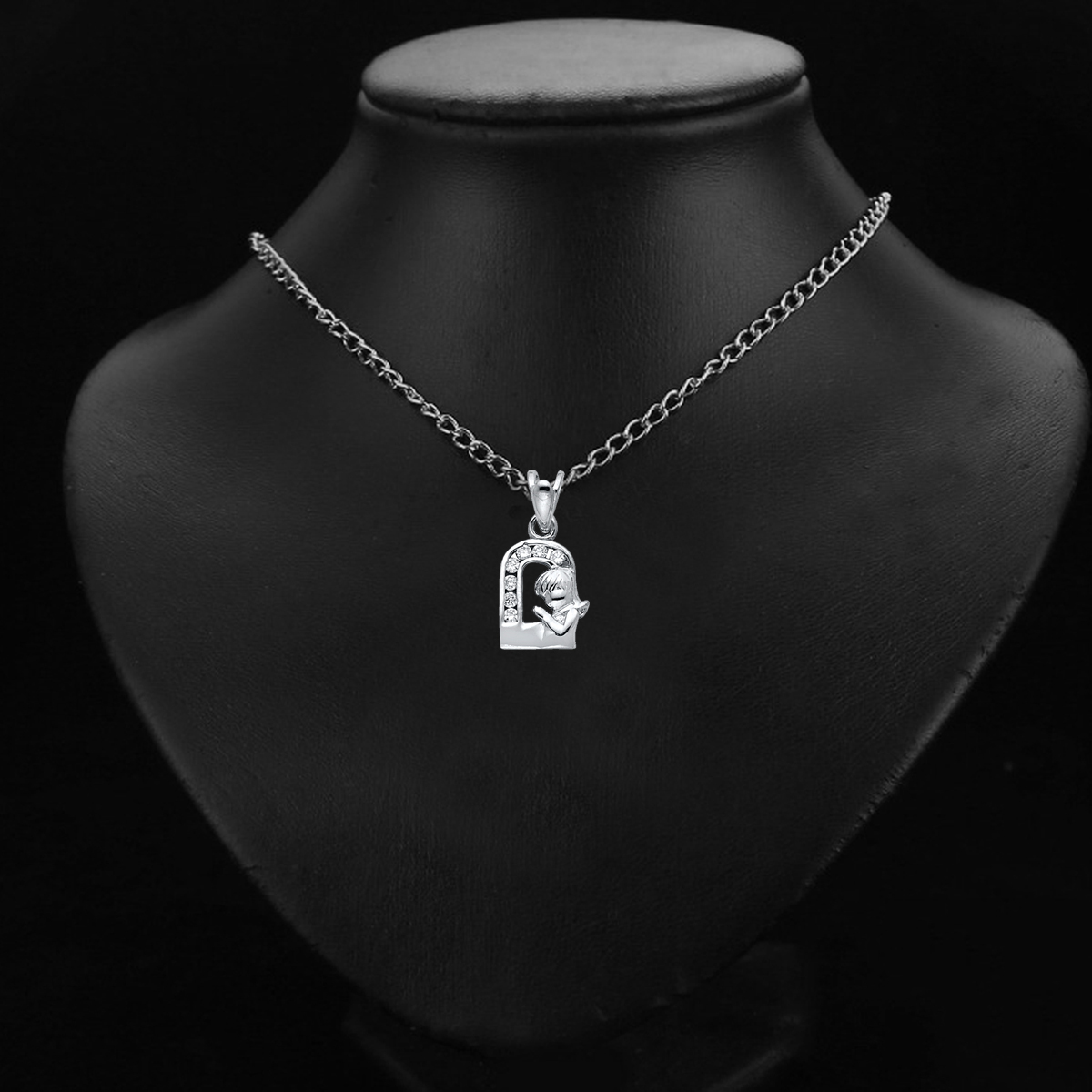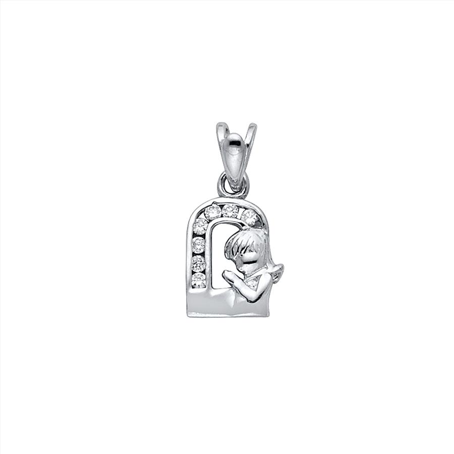14K White Gold Cubic Zirconia Girl Prayer Religious Pendant - 13 mm X 08 mm