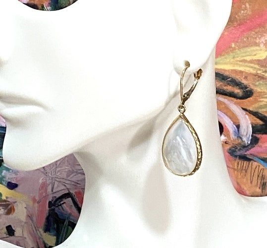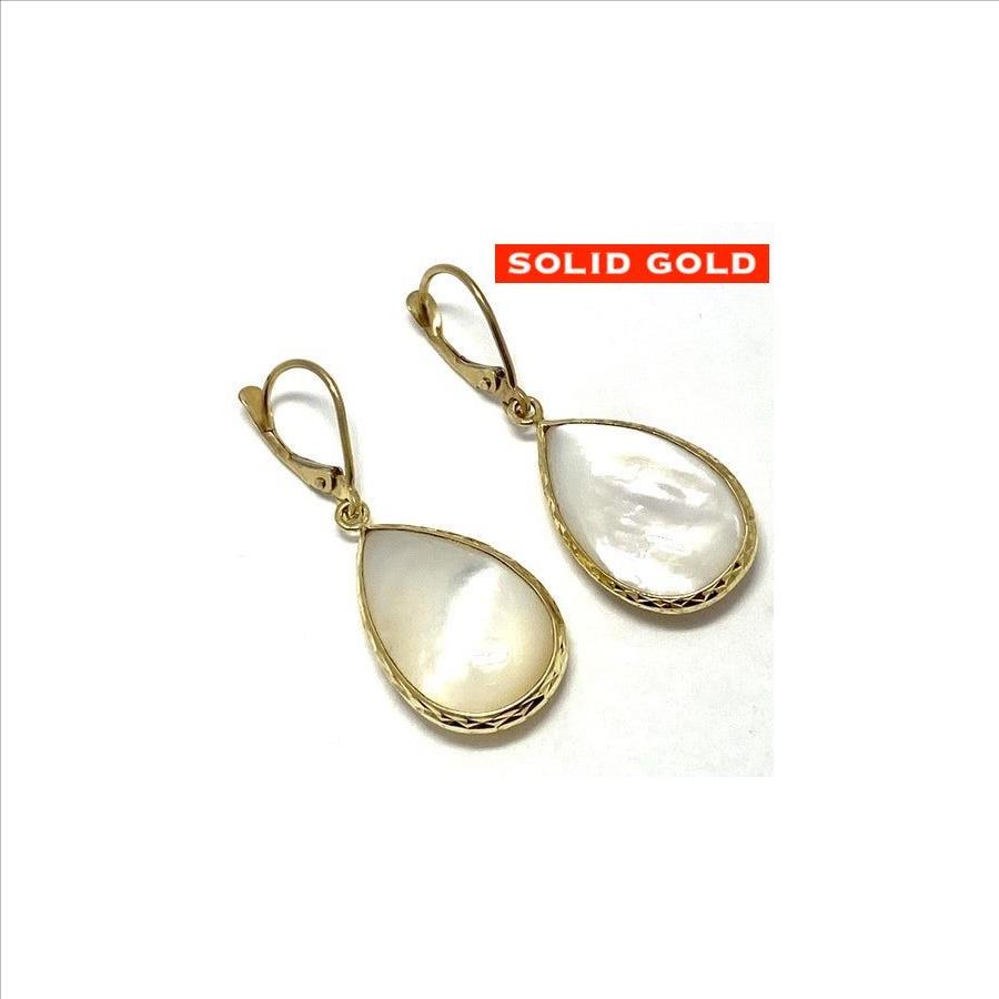 14k Yellow Gold, 1/2"x3/4" Genuine Mother of Pearl Drop Earrings