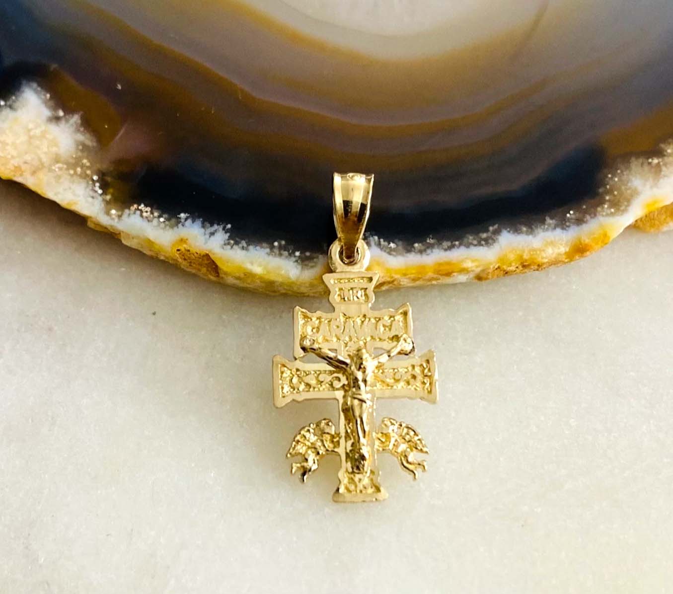 14K Yellow Gold Cross of Caravaca Pendant