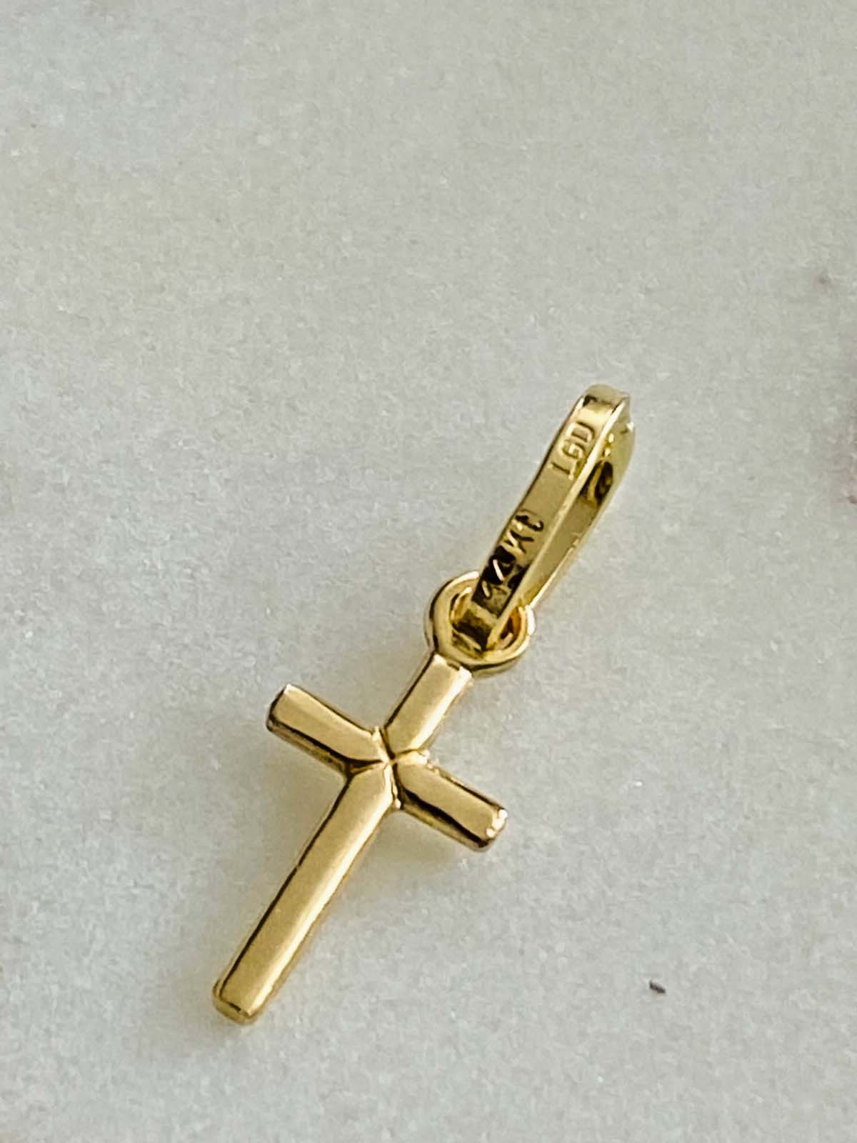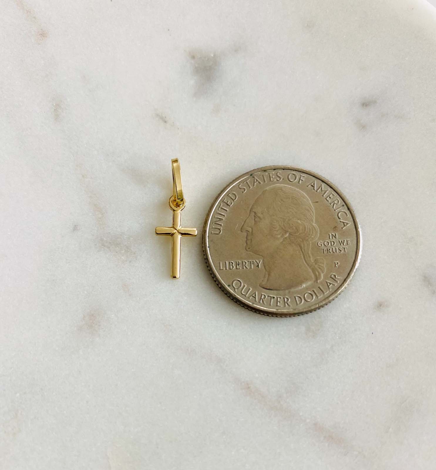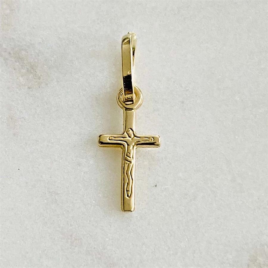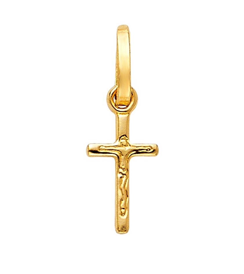 14K Yellow Gold Crucufix Design Tiny Cross Pendant