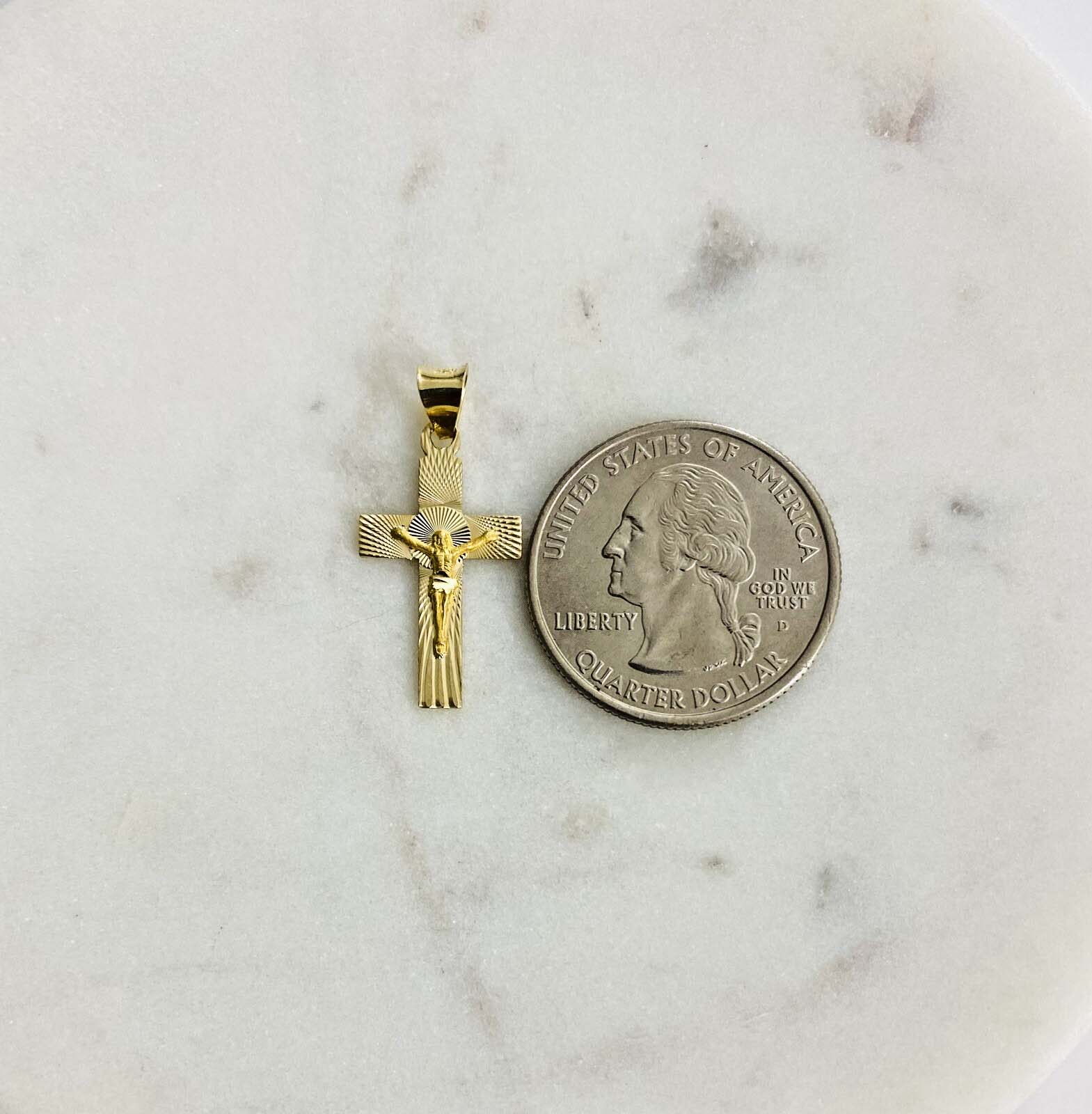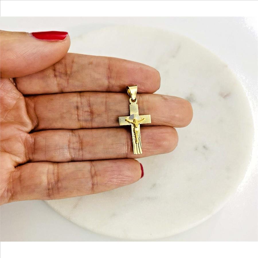 14K Yellow Gold Crucufix Stamp Pendant