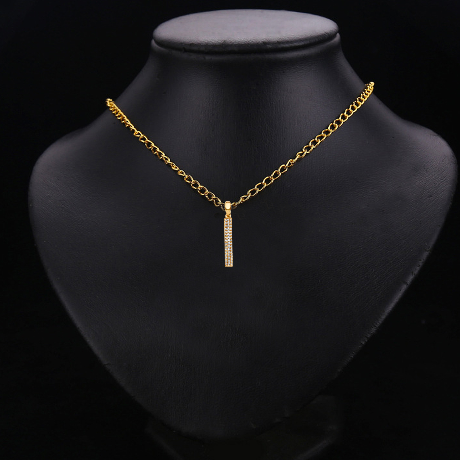 14K Yellow Gold Cubic zirconia Bar Pendant