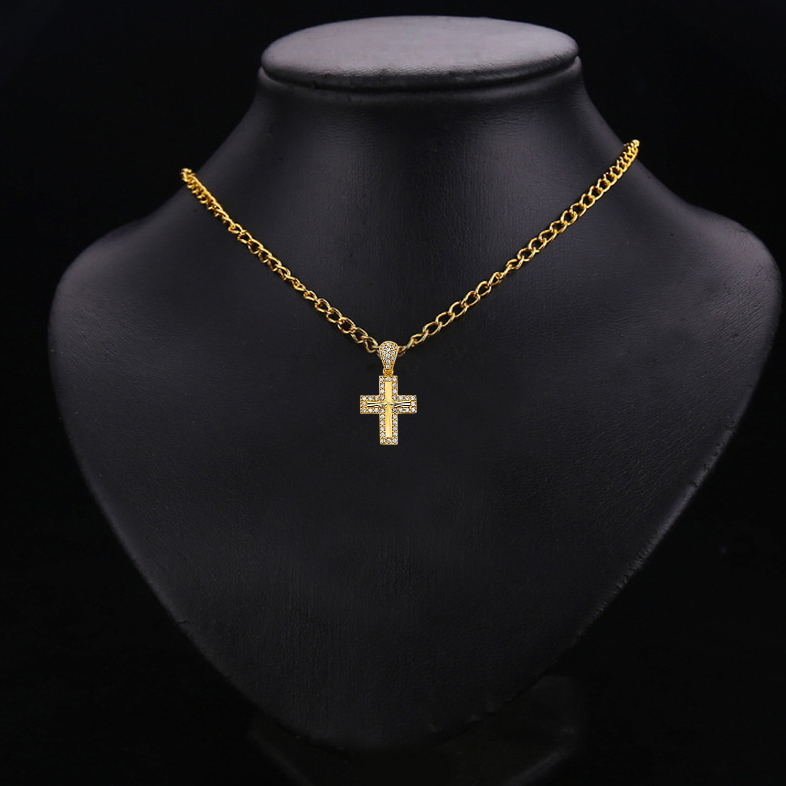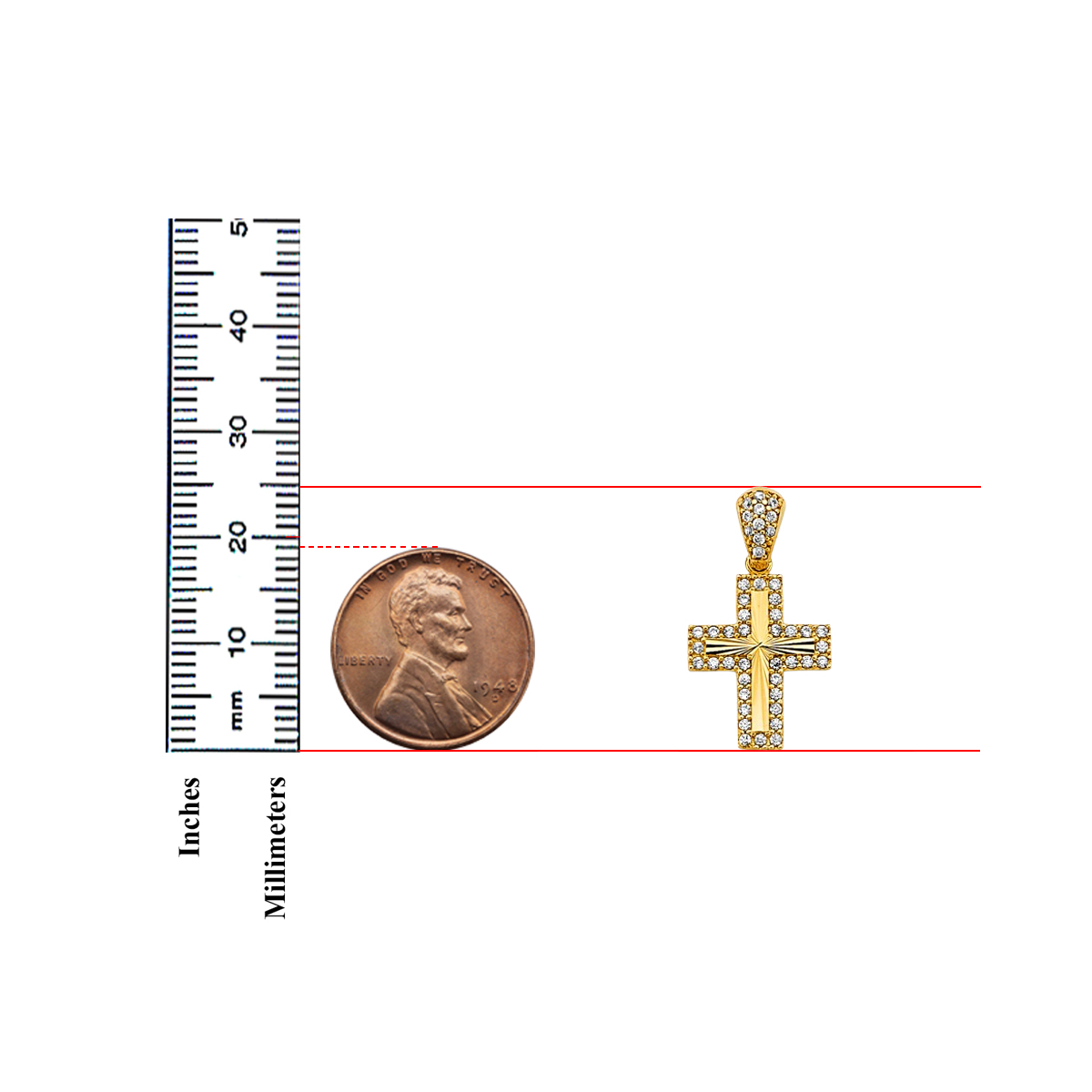 14K Yellow Gold Cubic zirconia Cross Pendant