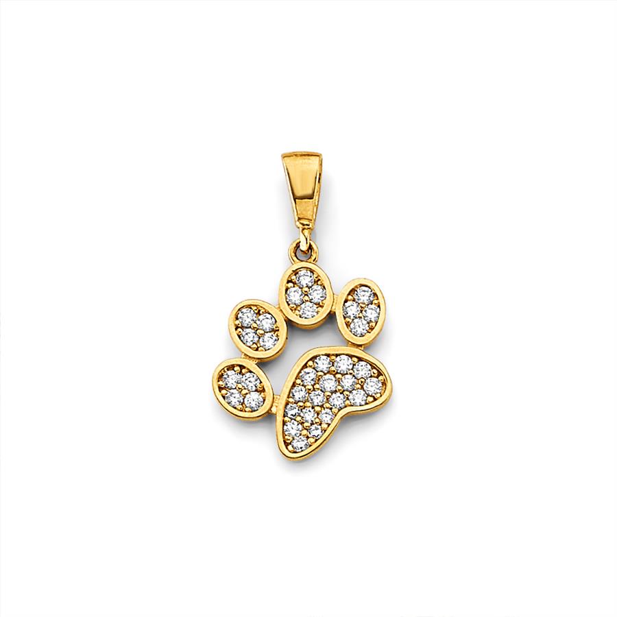 14K Yellow Gold Cubic zirconia Dog Paw Pendant