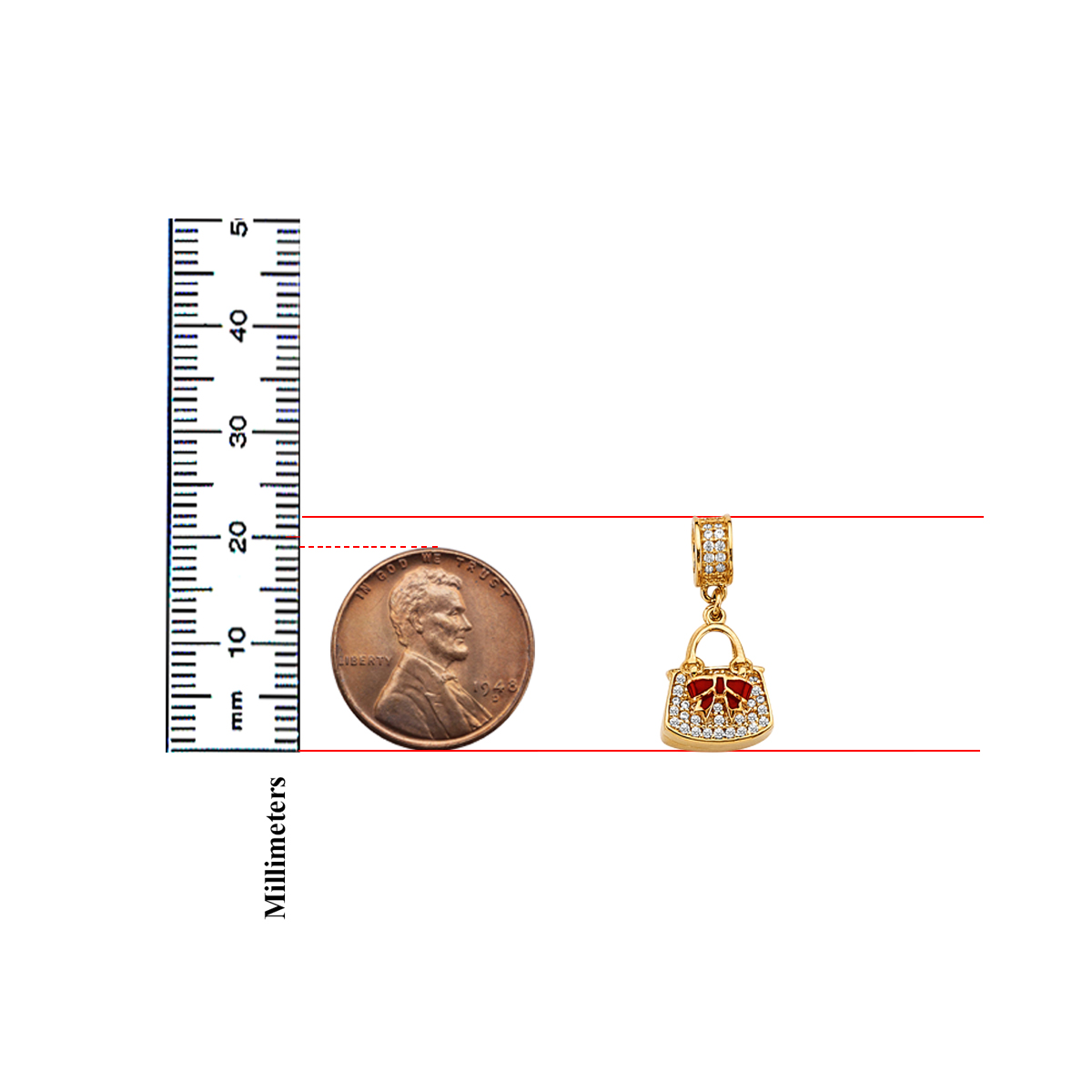 14K Yellow Gold Cubic zirconia Purse Charm Pendant