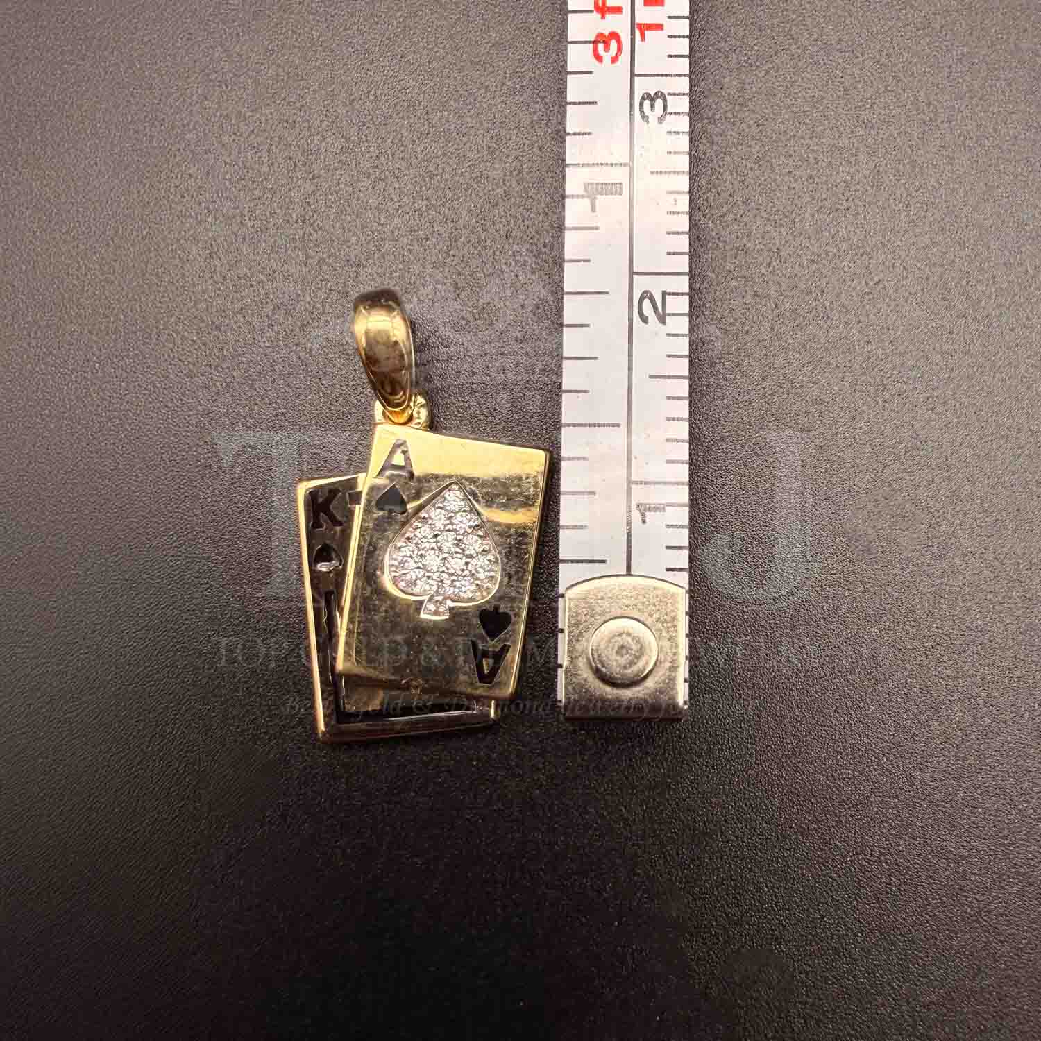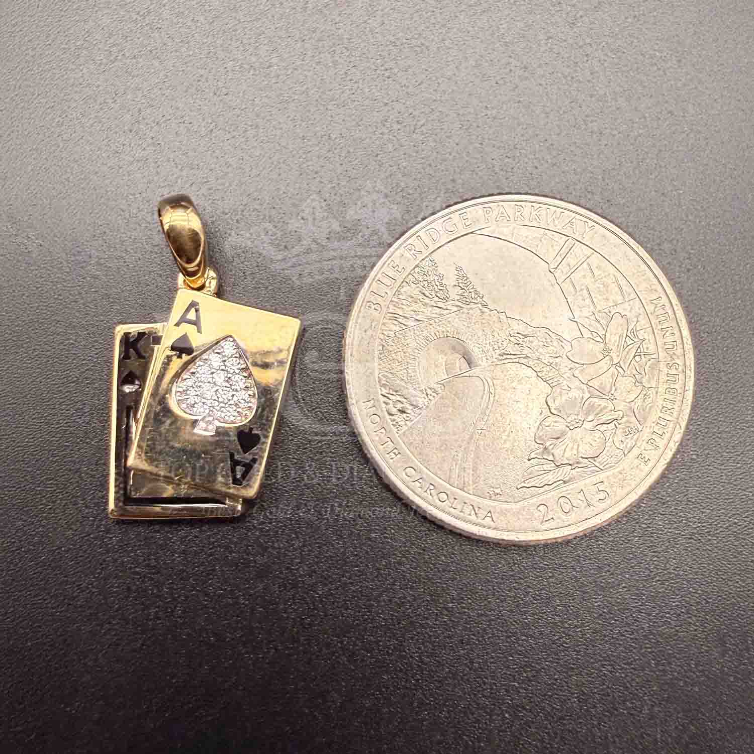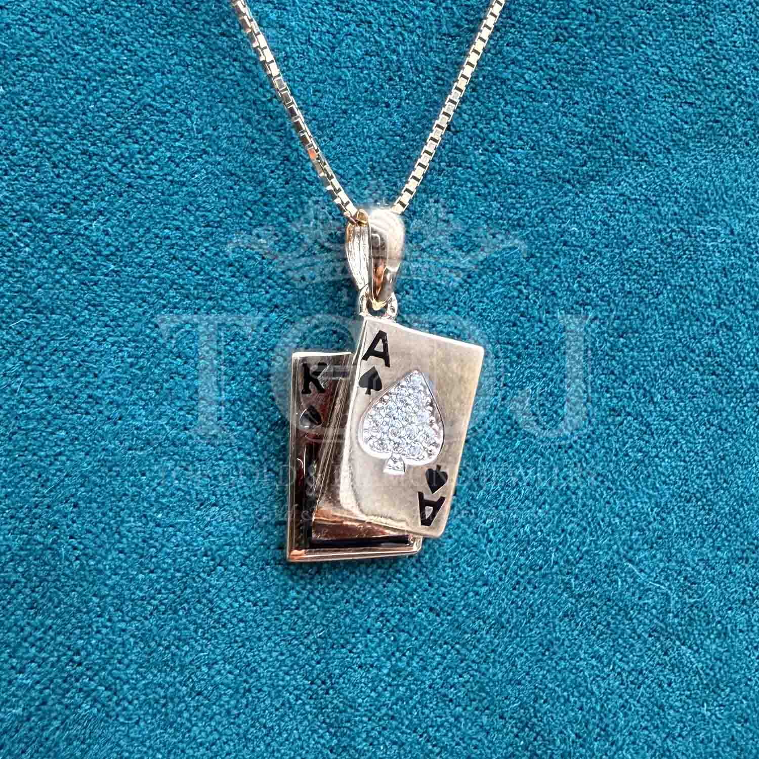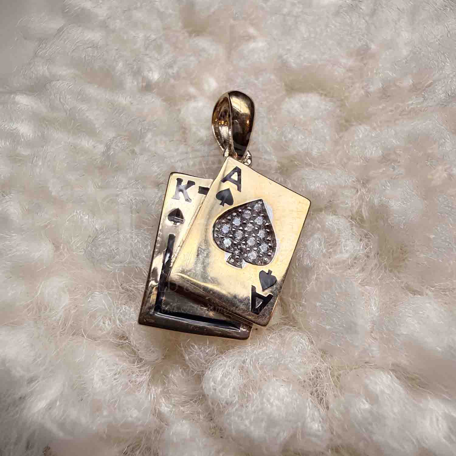 14K Yellow Gold cubic zirconia Spade A & K Card Pendant