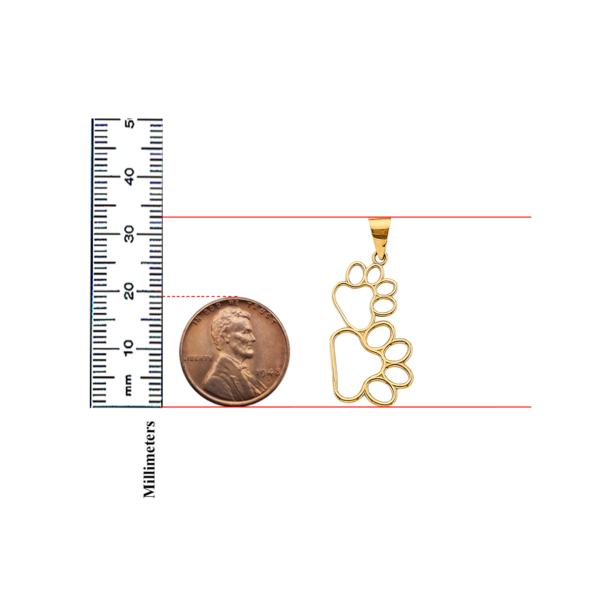 14K Yellow Gold Dog Paw Pendant