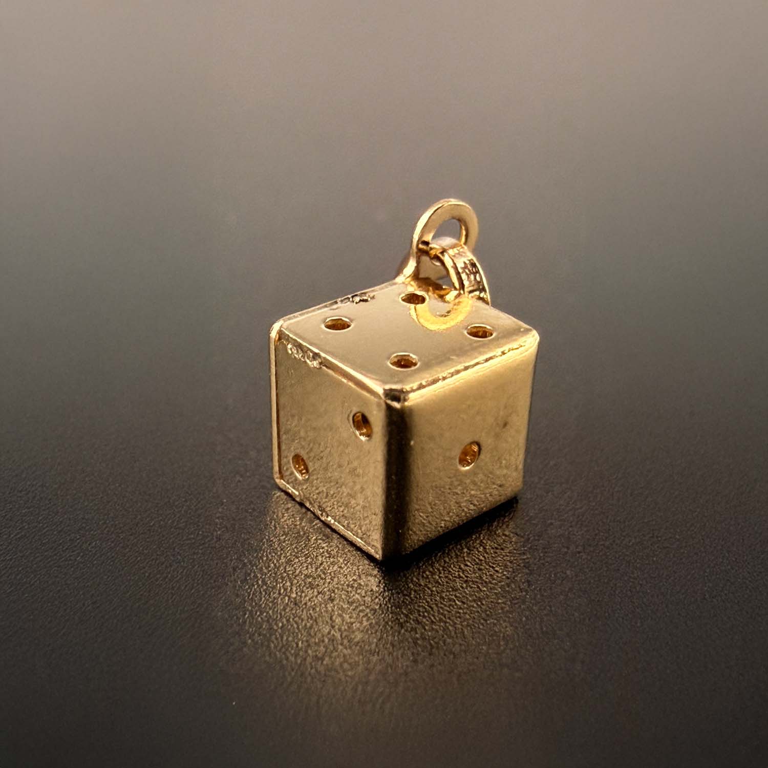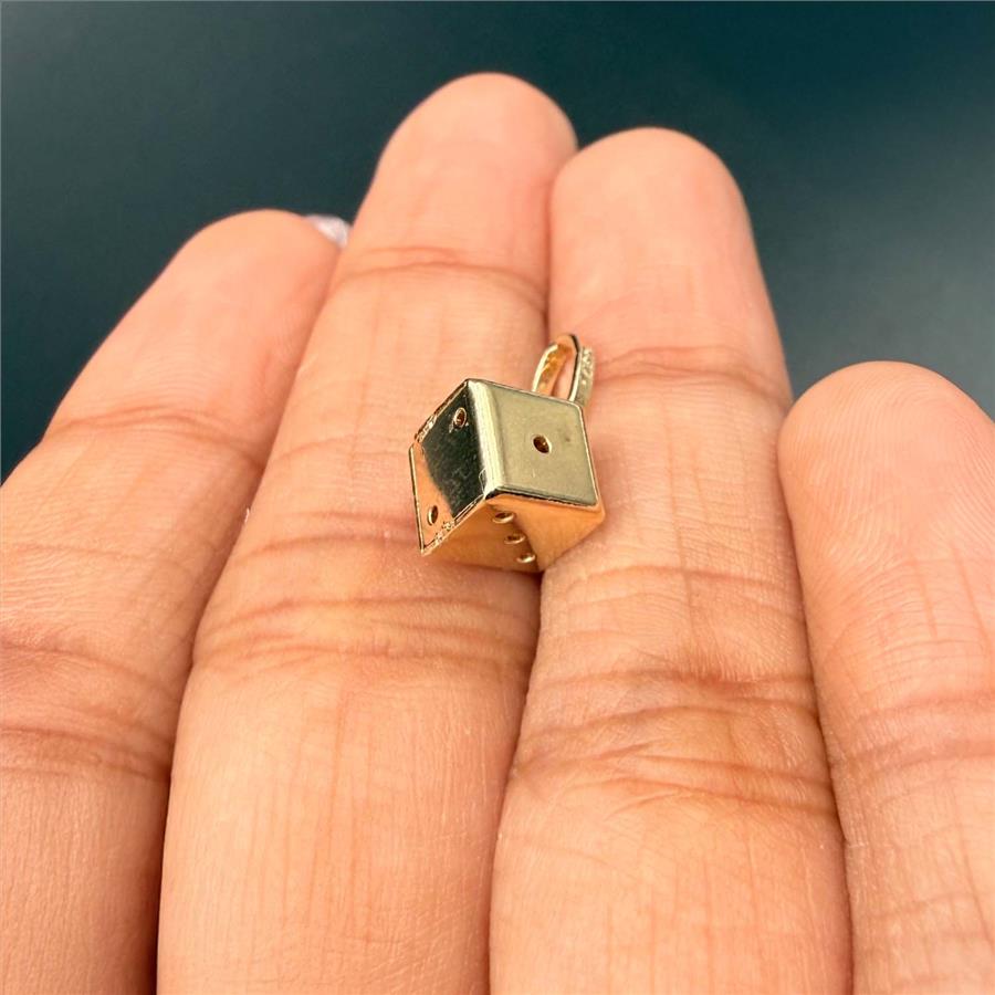 14K Yellow Gold Hollow Dice Pendant