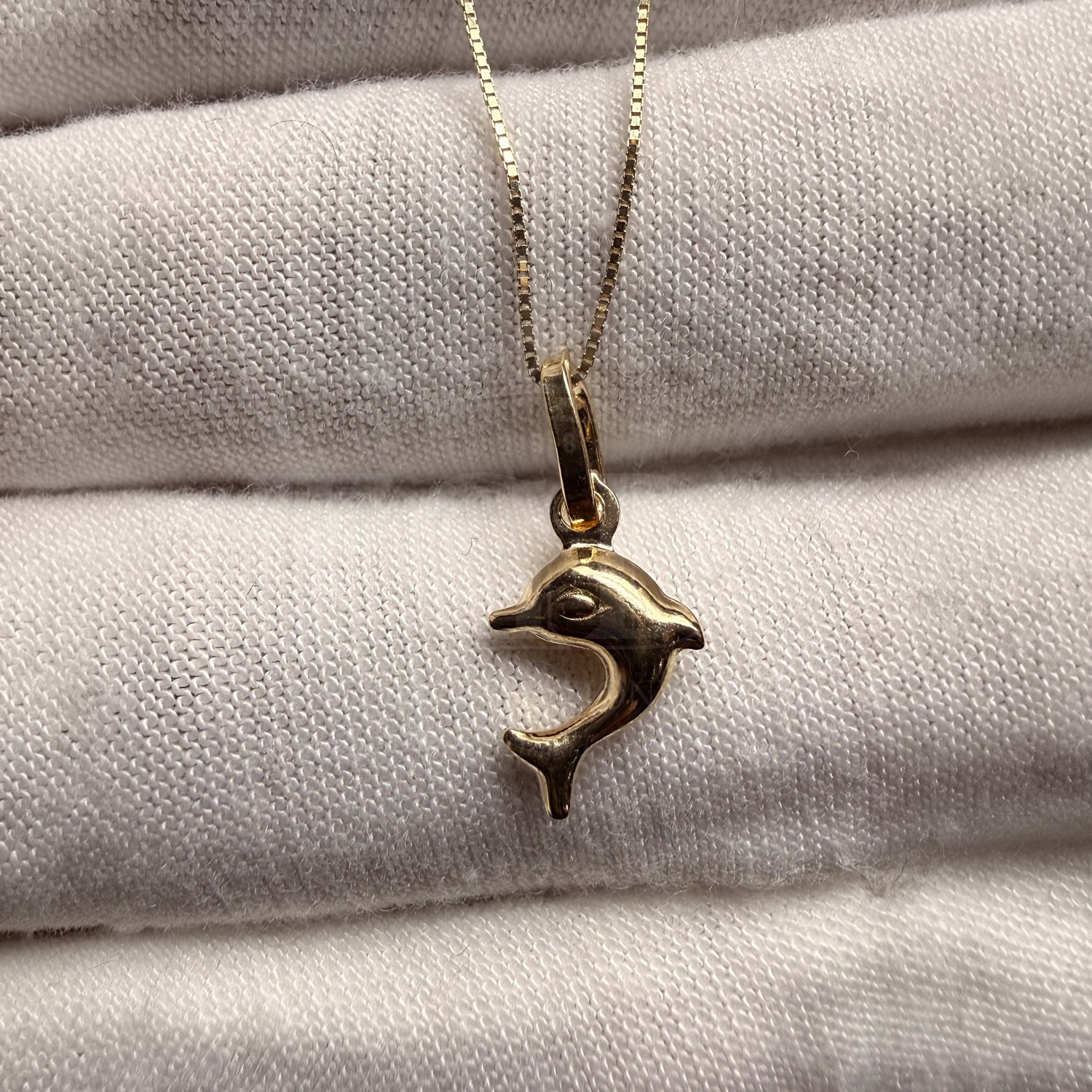 14K Yellow Gold Hollow Dolphin Pendant With Yellow Gold 0.5mm Box Chain - 16 Inch