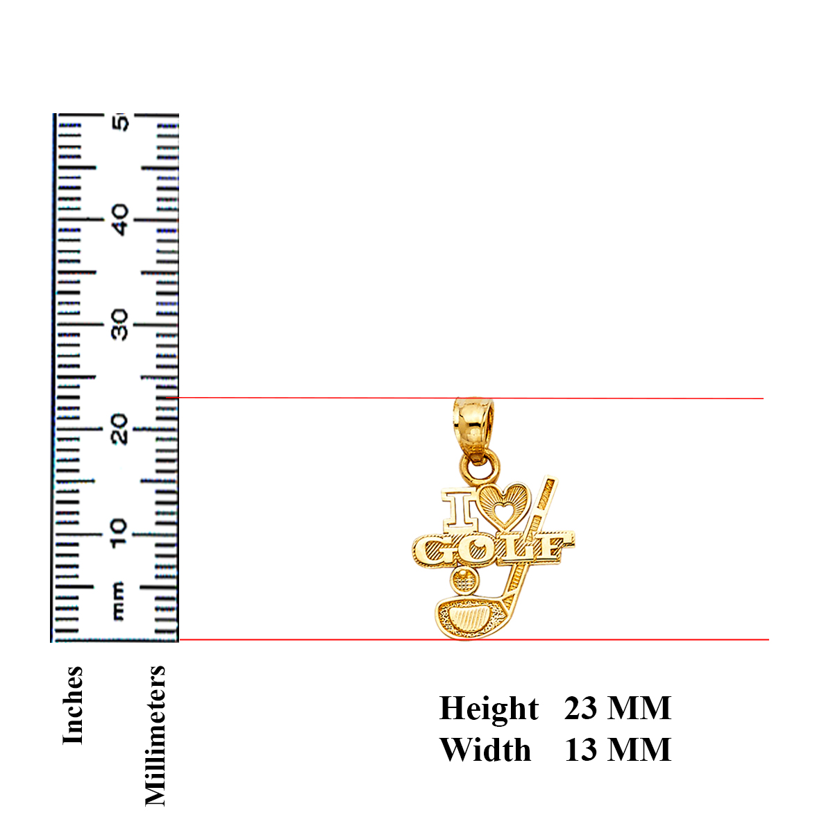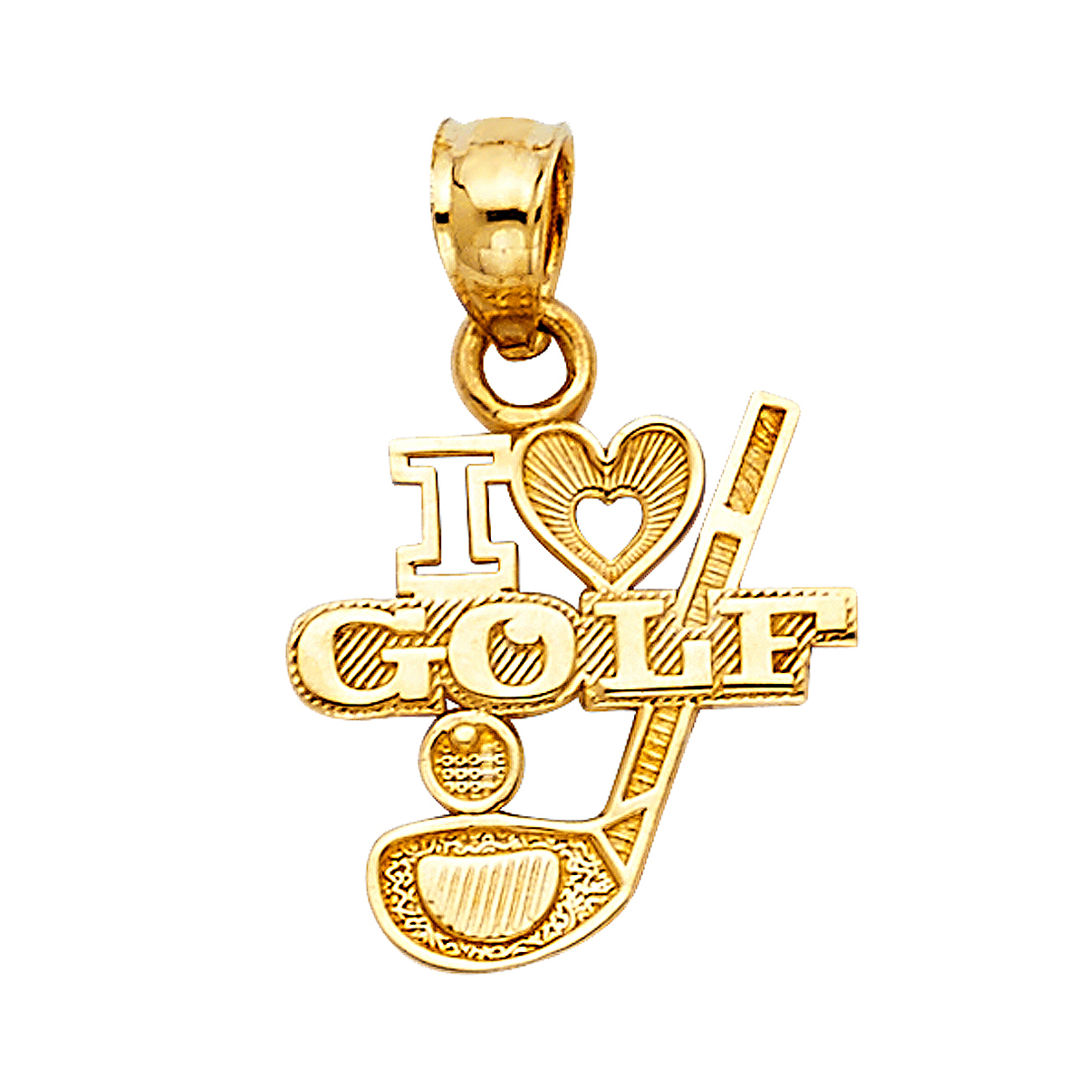 14K Yellow Gold I Love Golf Pendant - 23 mm X 13 mm